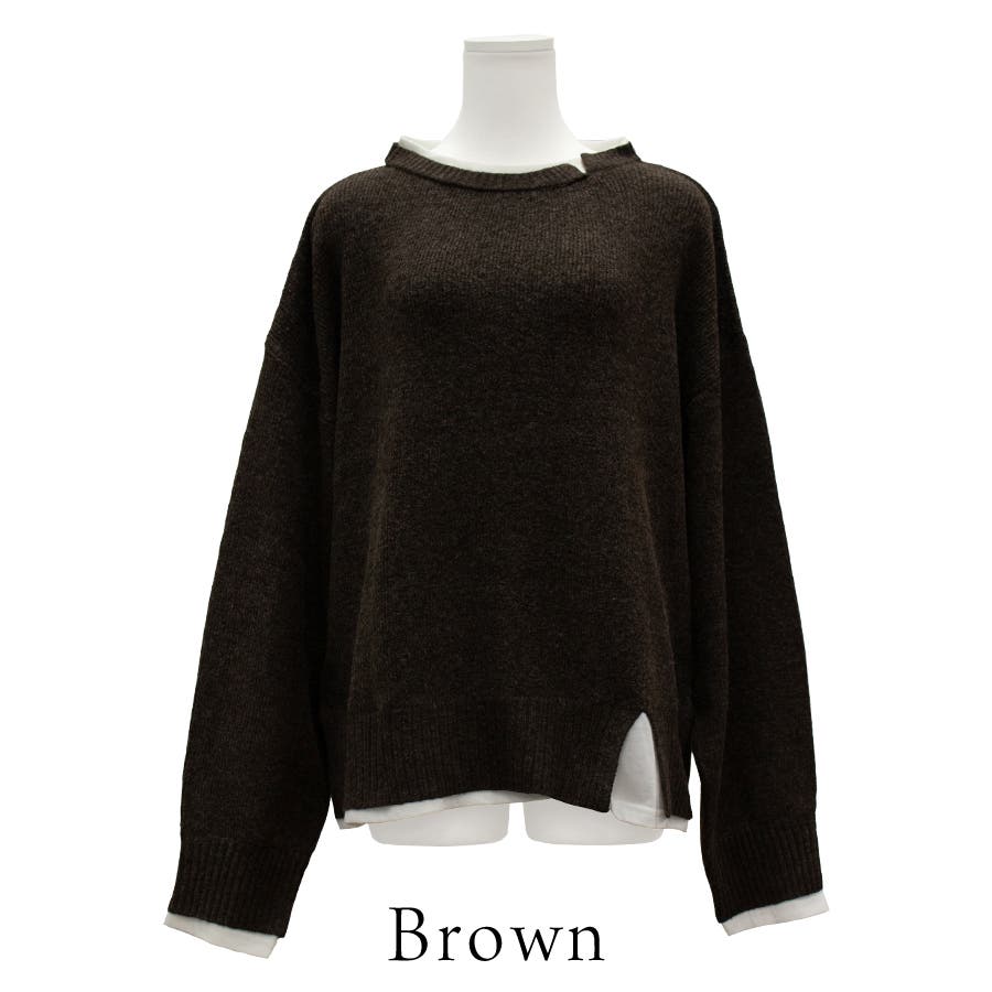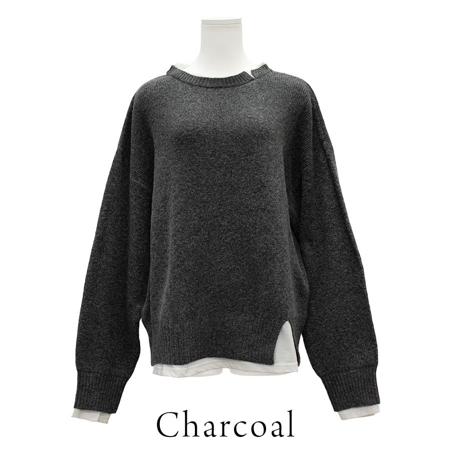 ニット×Tシャツのレイヤード風デザインが今季らしいアイテム。