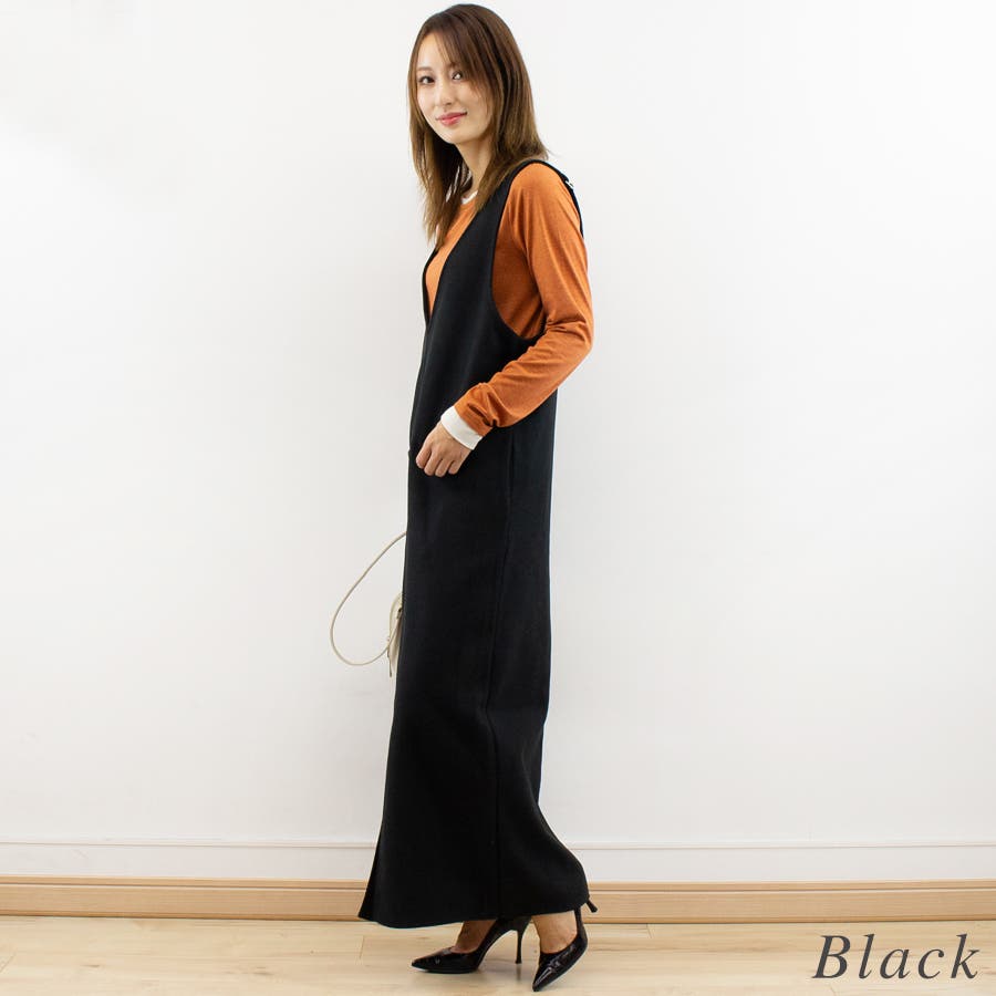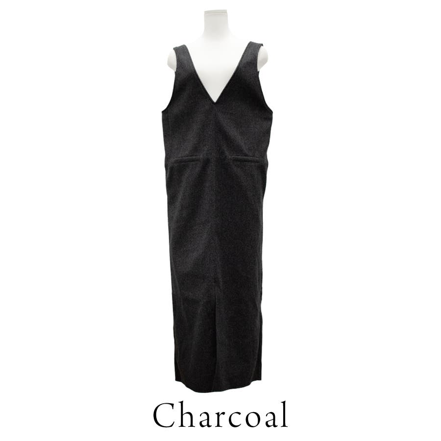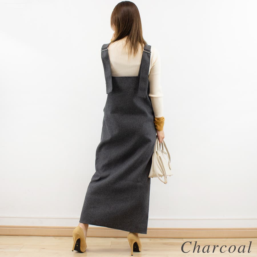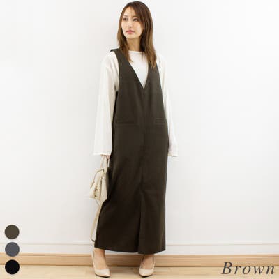 Vネックが大人っぽいフェイクウールジャンパースカート