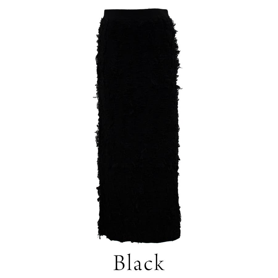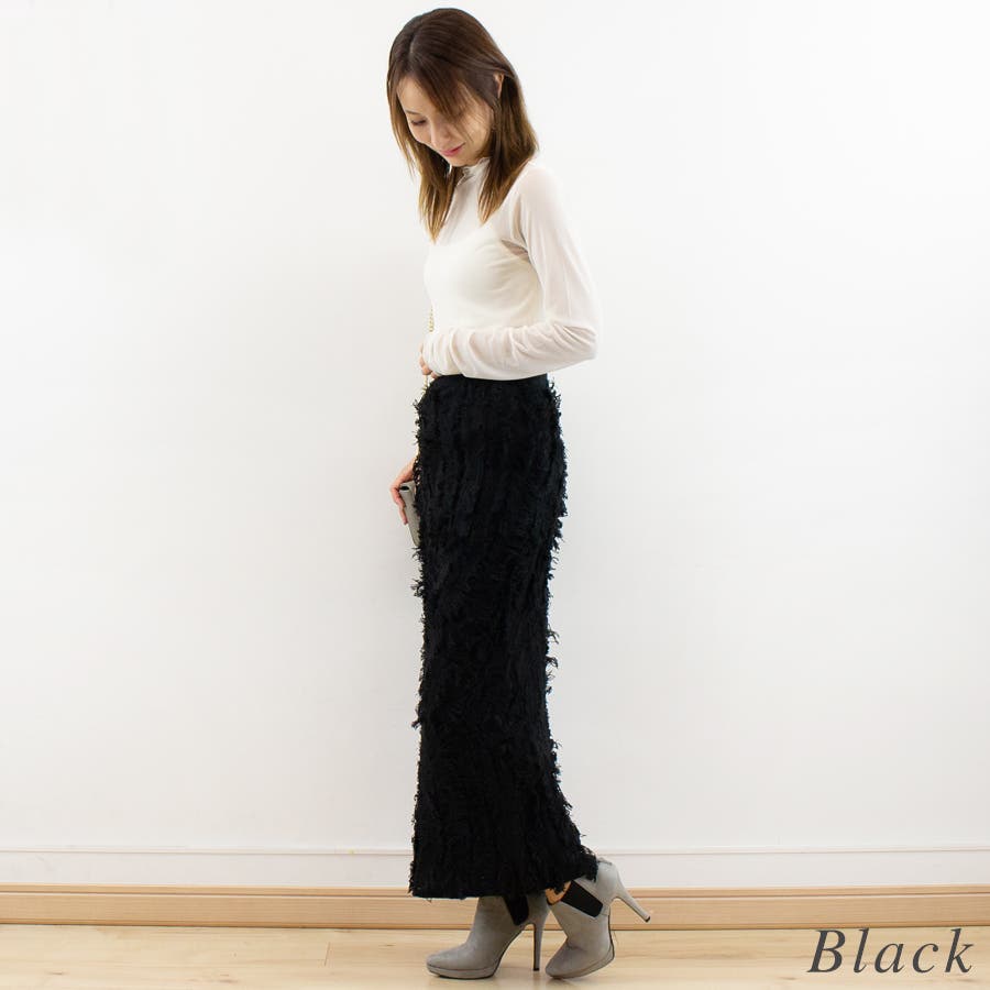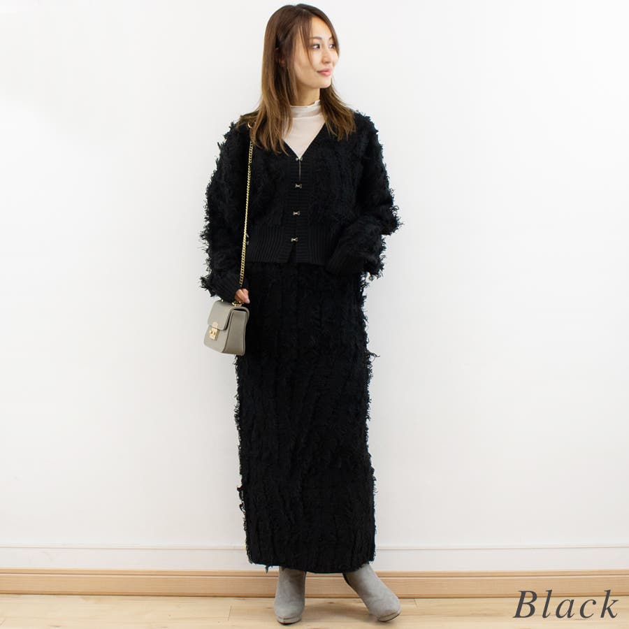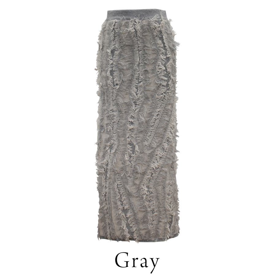 フリンジデザインで程よいボリューム感がとってもかわいいニットスカート。