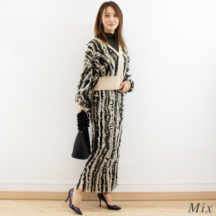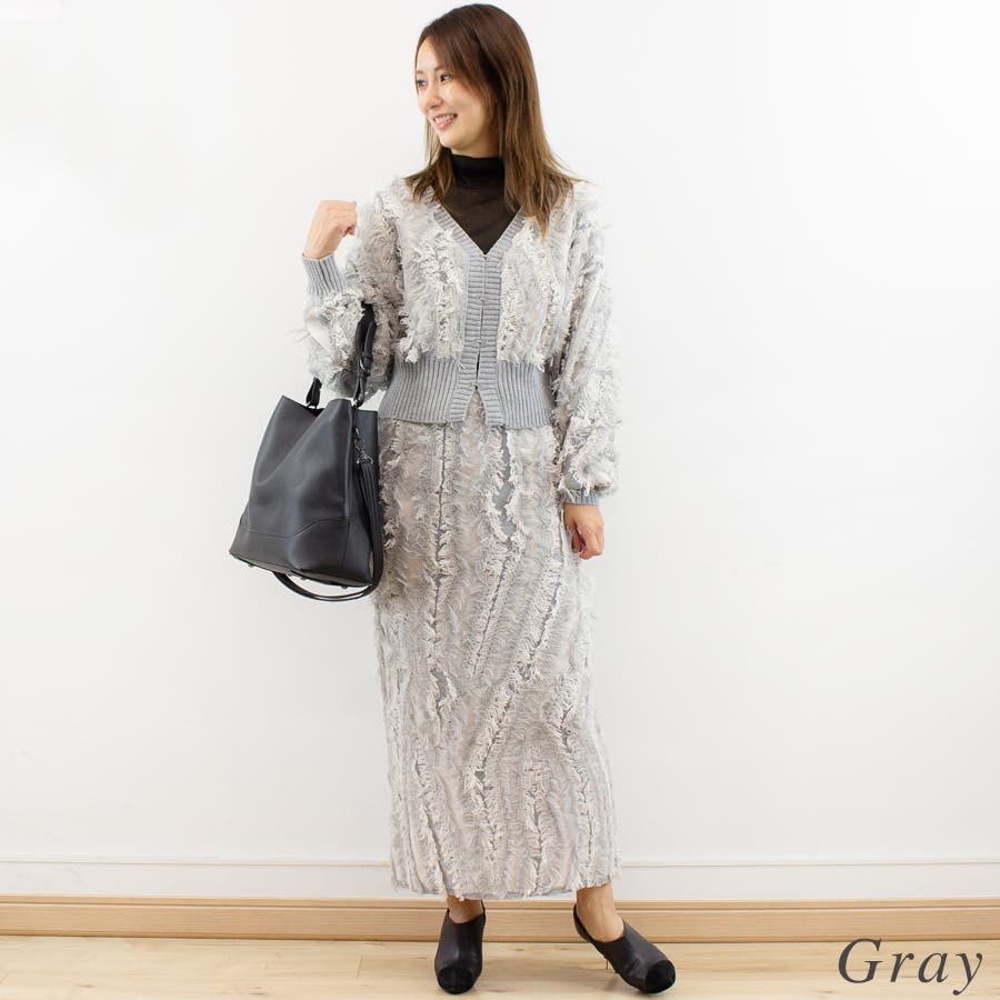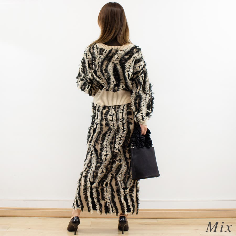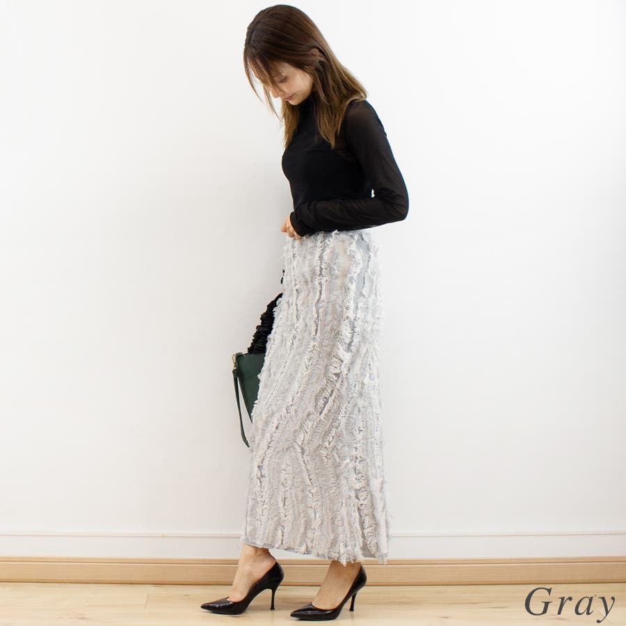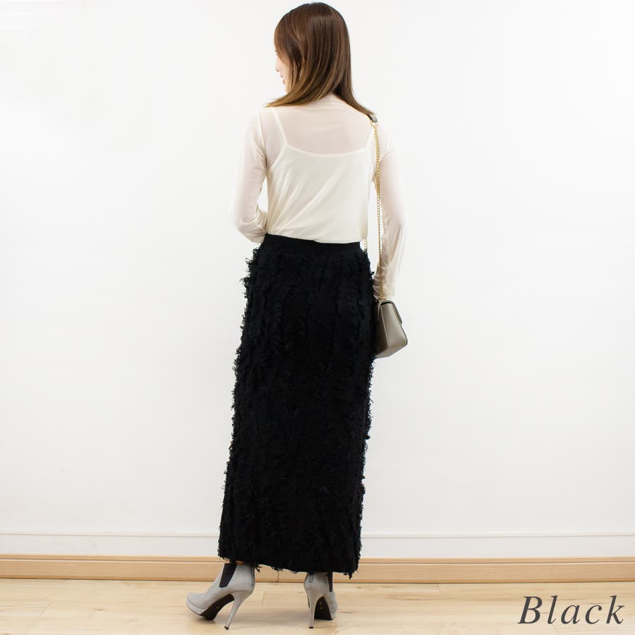 フリンジデザインで程よいボリューム感がとってもかわいいニットスカート。