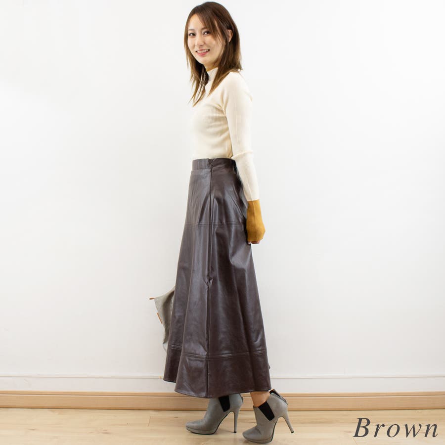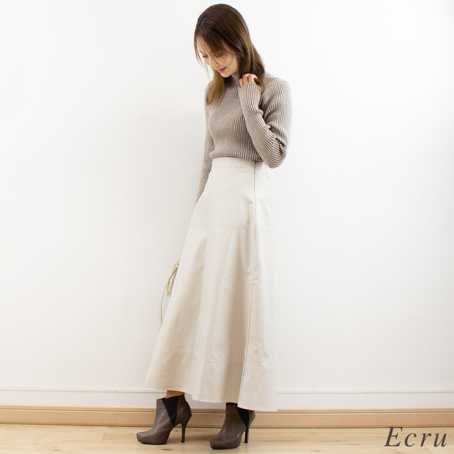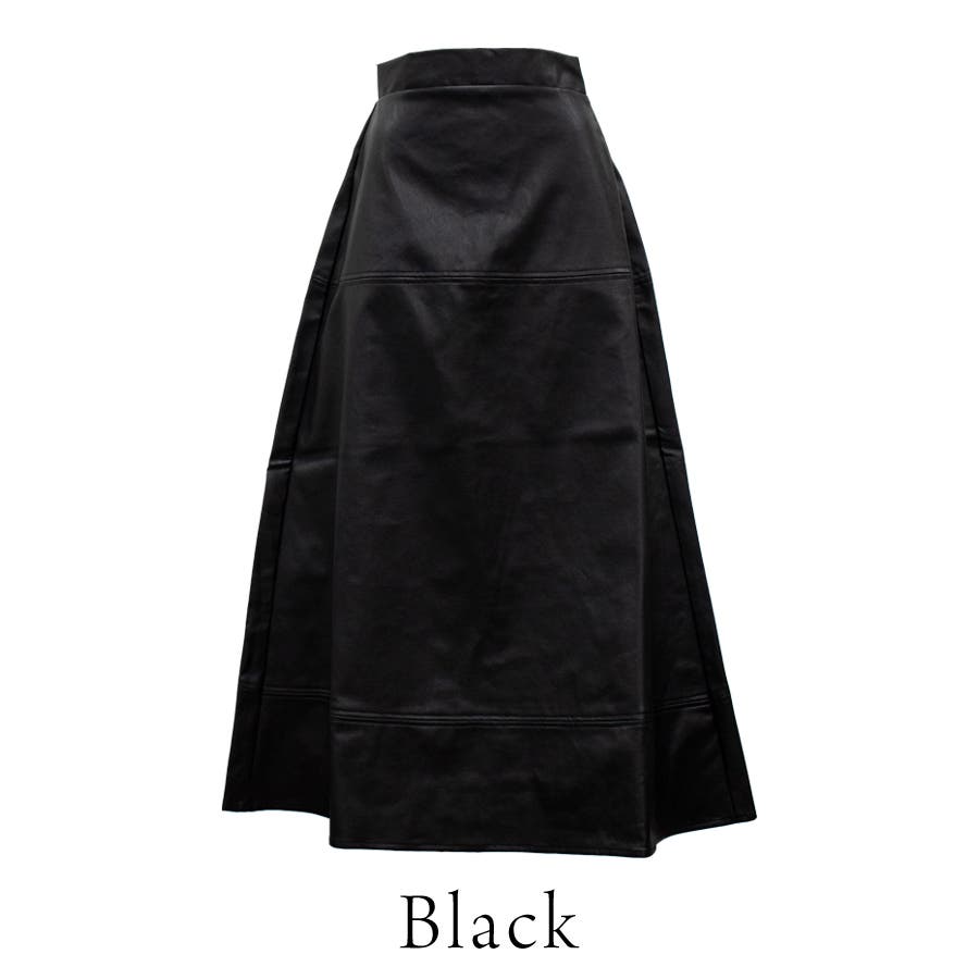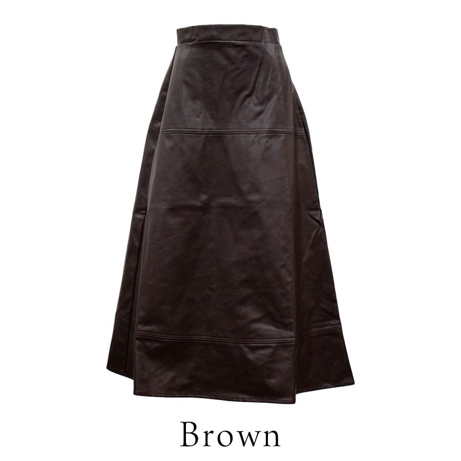 フェイクレザーでは珍しい、フレアシルエットのスカート。