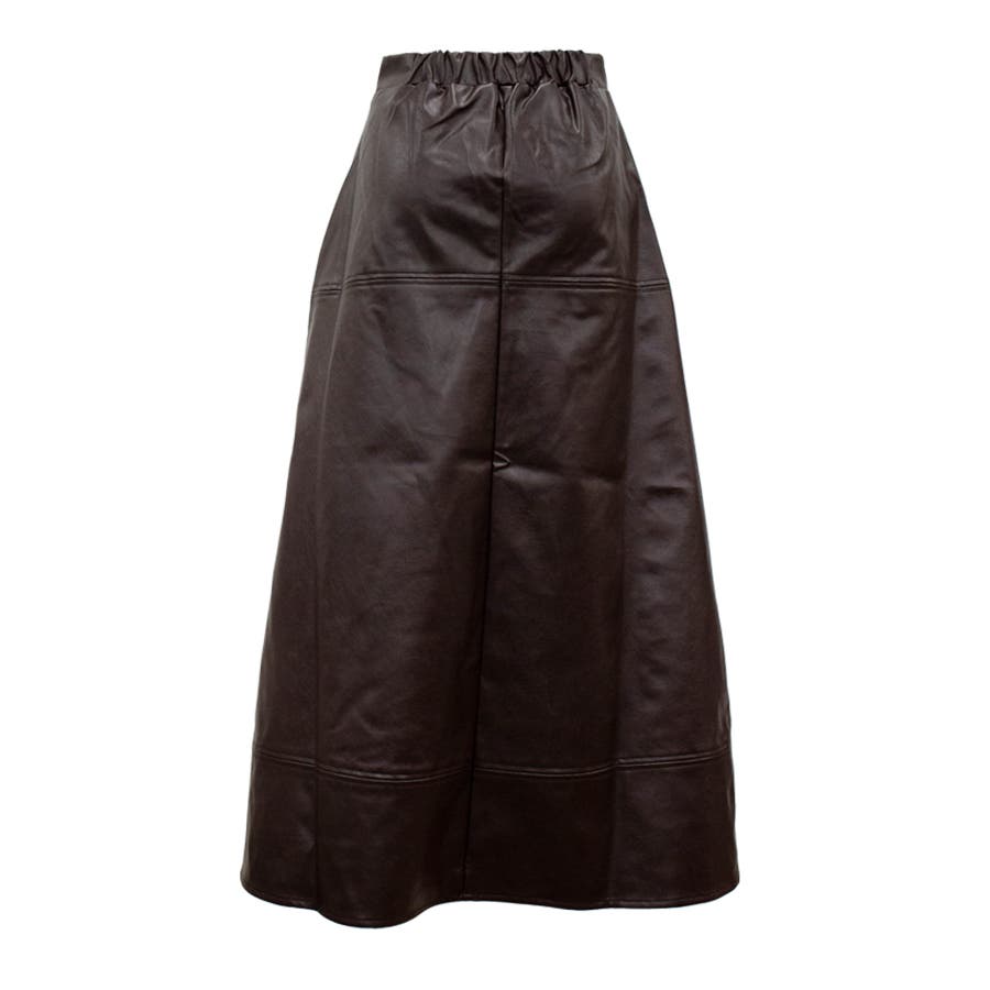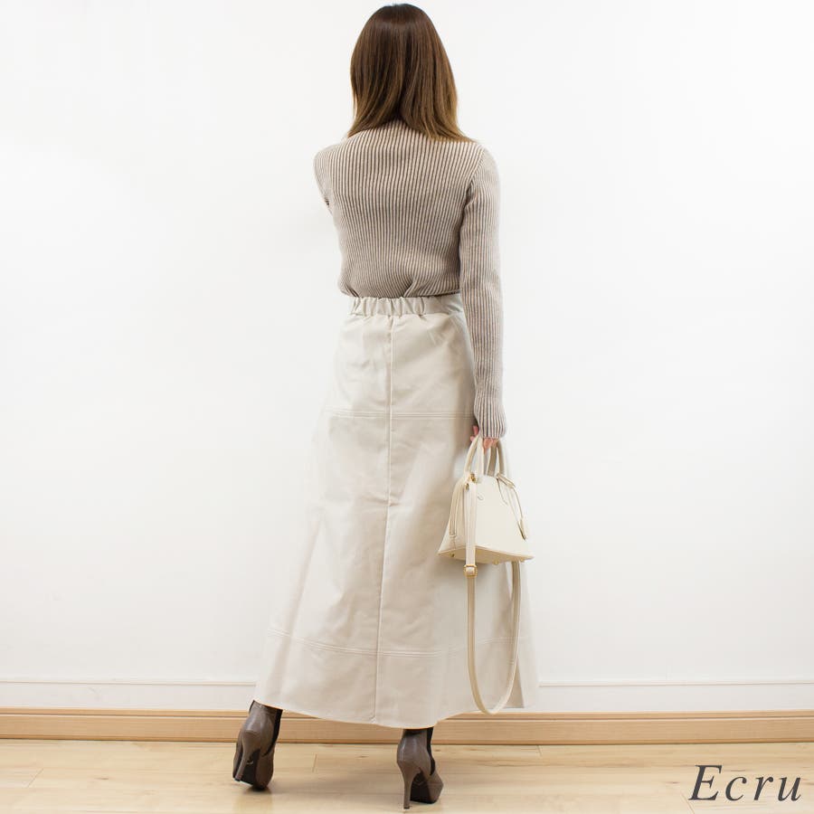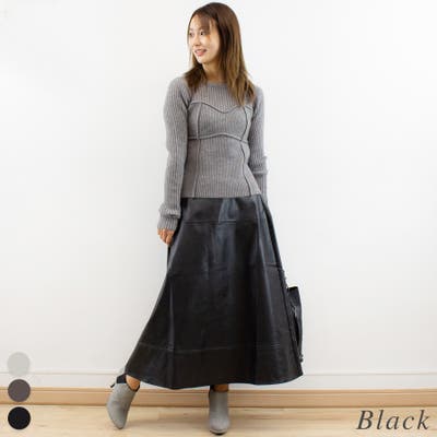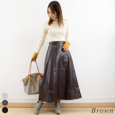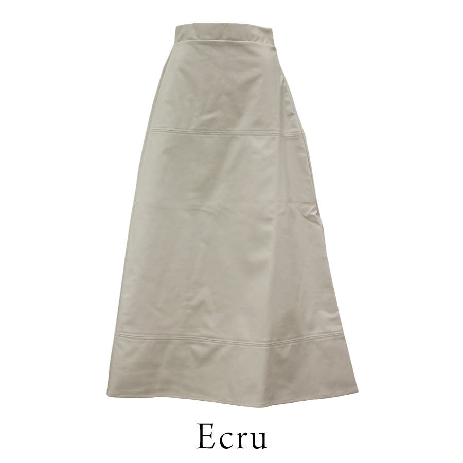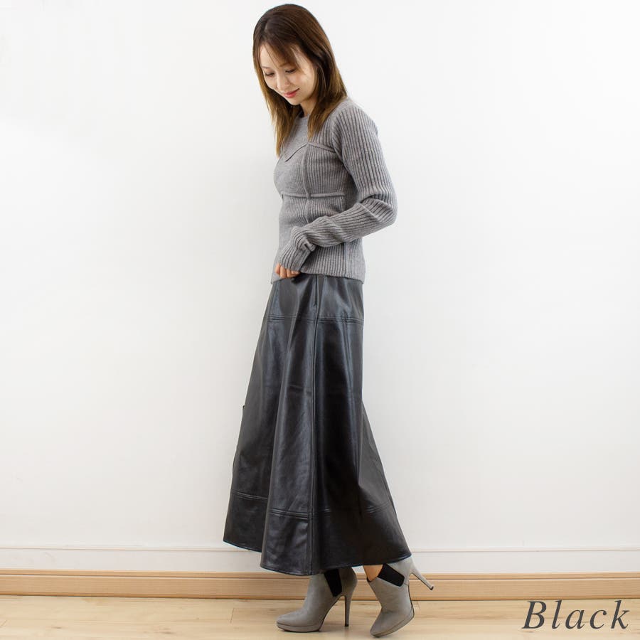 フェイクレザーでは珍しい、フレアシルエットのスカート。