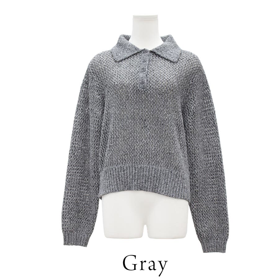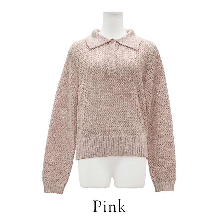 杢調の糸でメッシュに仕上げたポロデザインのトップス。