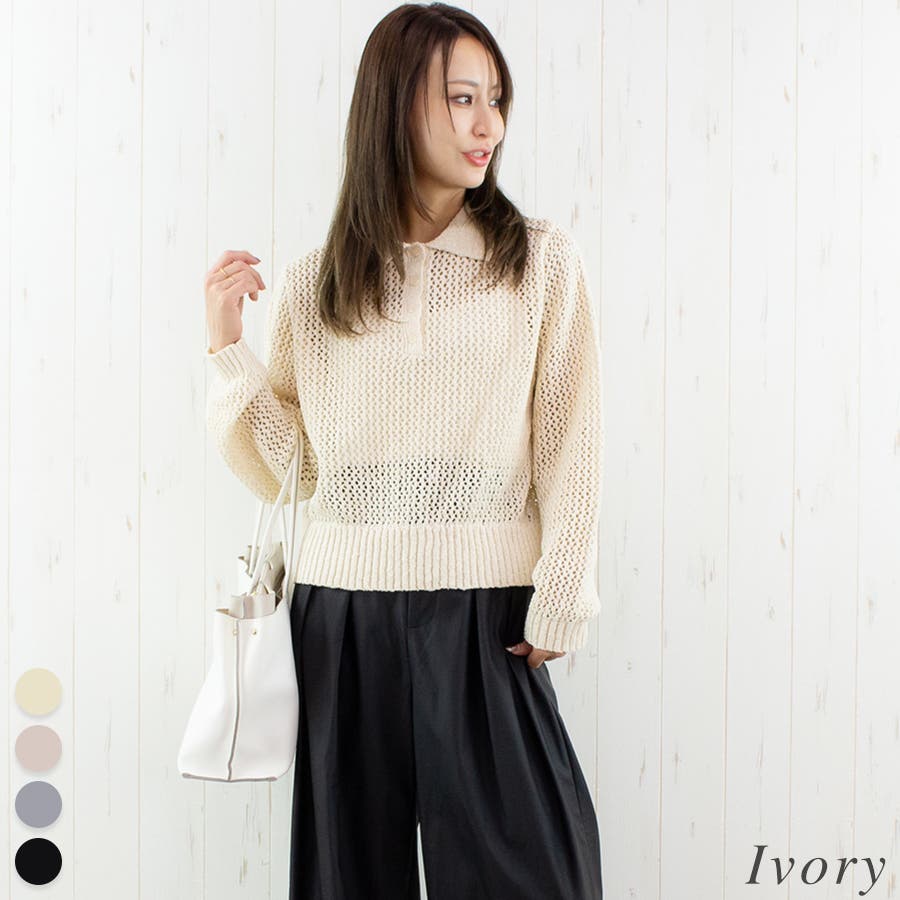 通学/通勤/上品/綺麗目/ニット/ポロ/レイヤード/