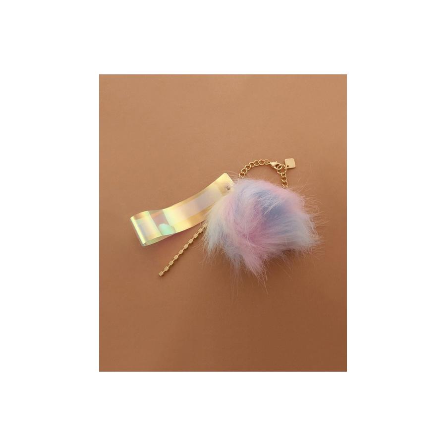 カラーミックスファーにホログラムのストラップを合わせた今までにないスポーティーなファーチャームです。