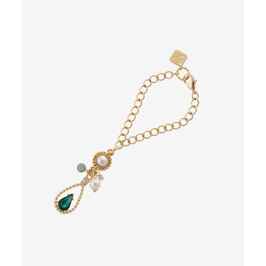 先端の揺れるしずくの中のカラーストーンがキュートなバッグチャームです。