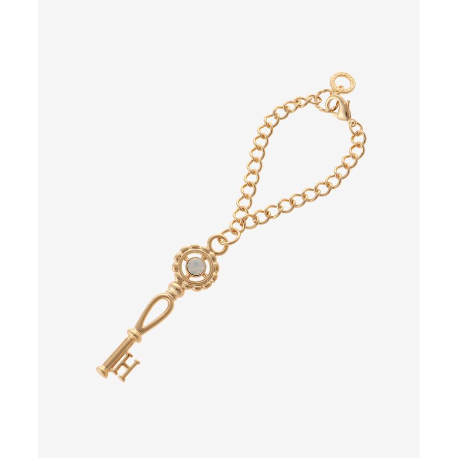 鍵の先端にイニシャルが付いたデザインのバッグチャームです。
