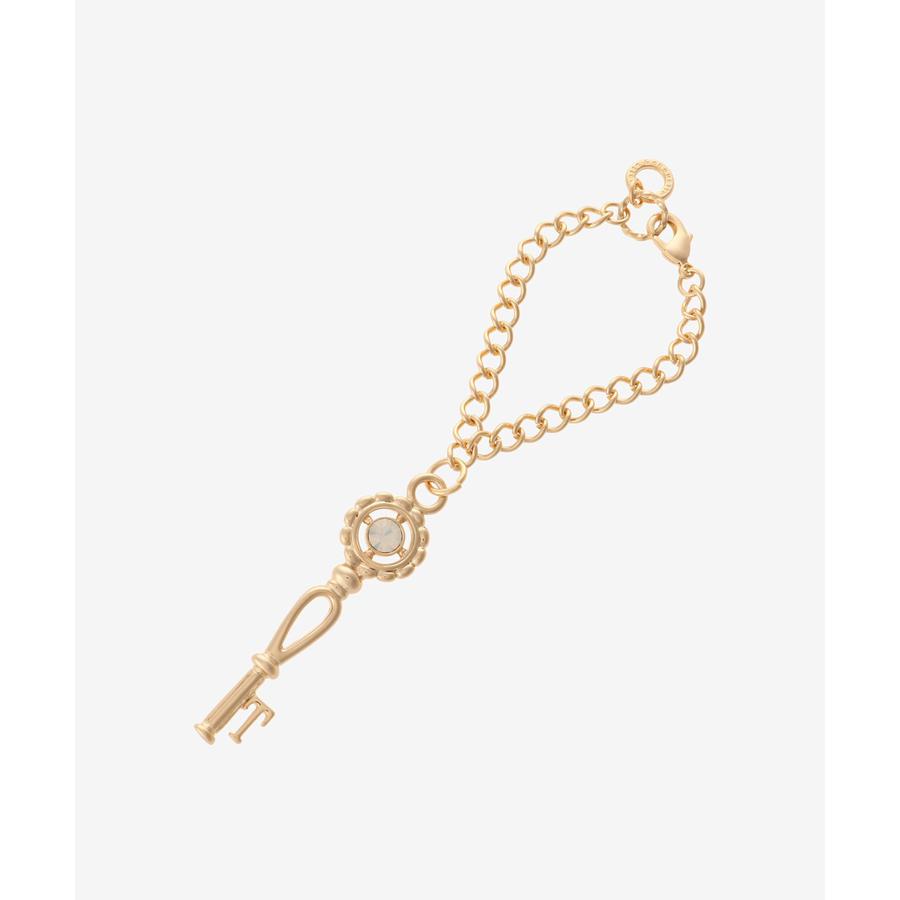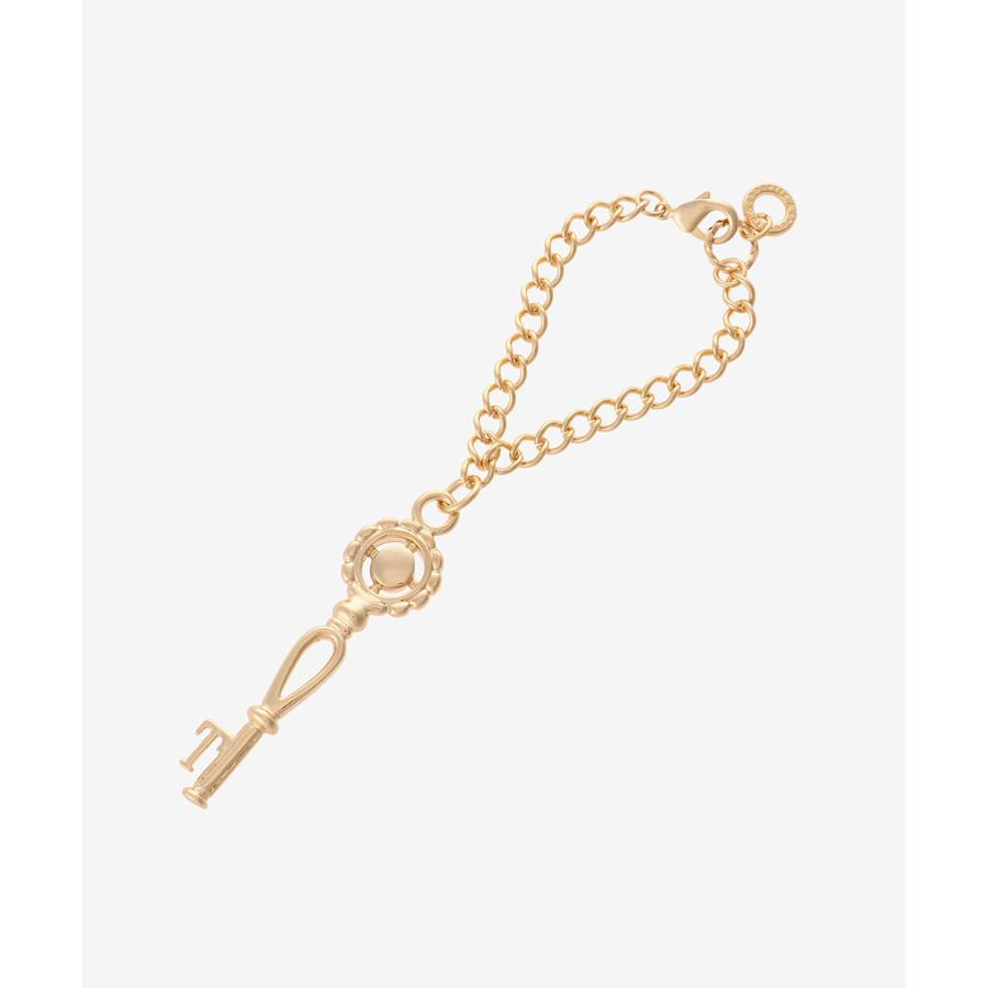 鍵の先端にイニシャルが付いたデザインのバッグチャームです。