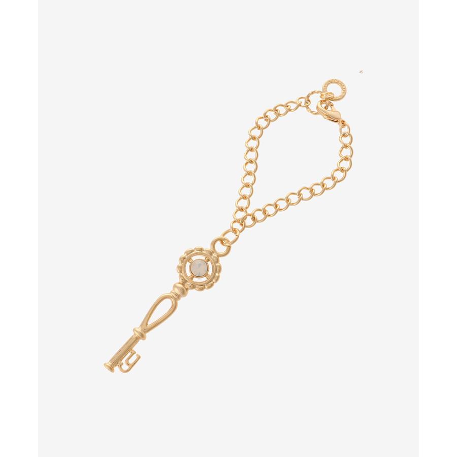 鍵の先端にイニシャルが付いたデザインのバッグチャームです。