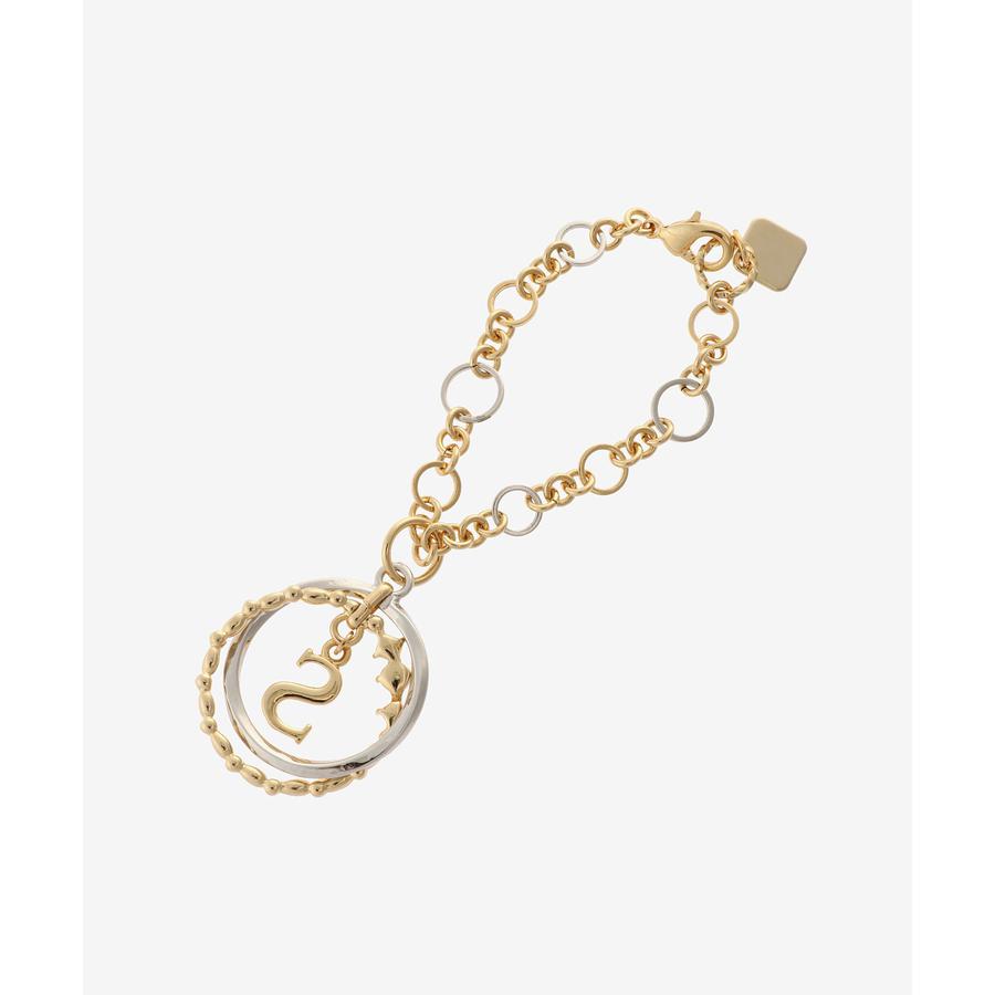 サークルの中に揺れるイニシャルが可愛いバッグチャーム。