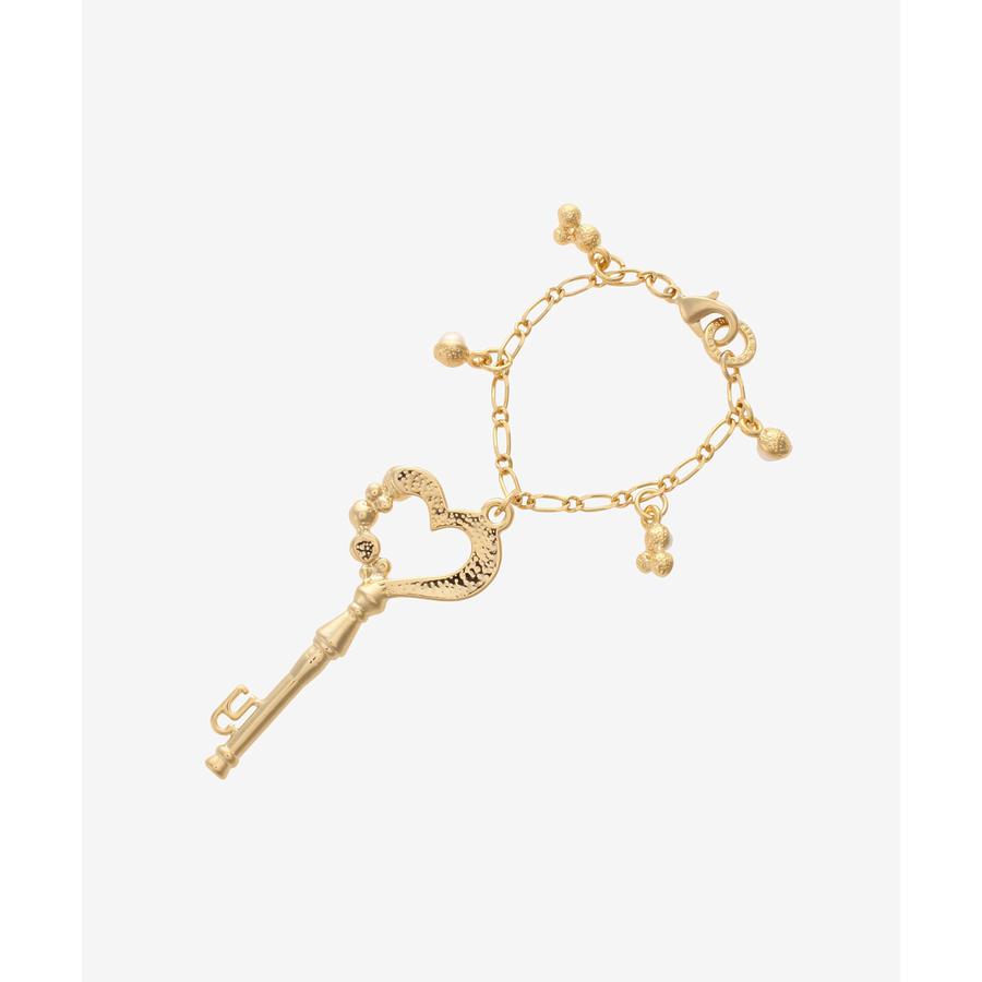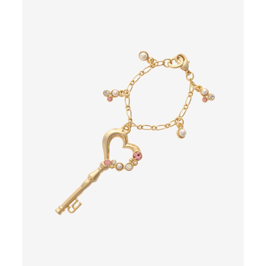 ハート型の鍵にイニシャルが付いたバッグチャームです。バッグが揺れる度にきらりと反射するビジューがキュート♡