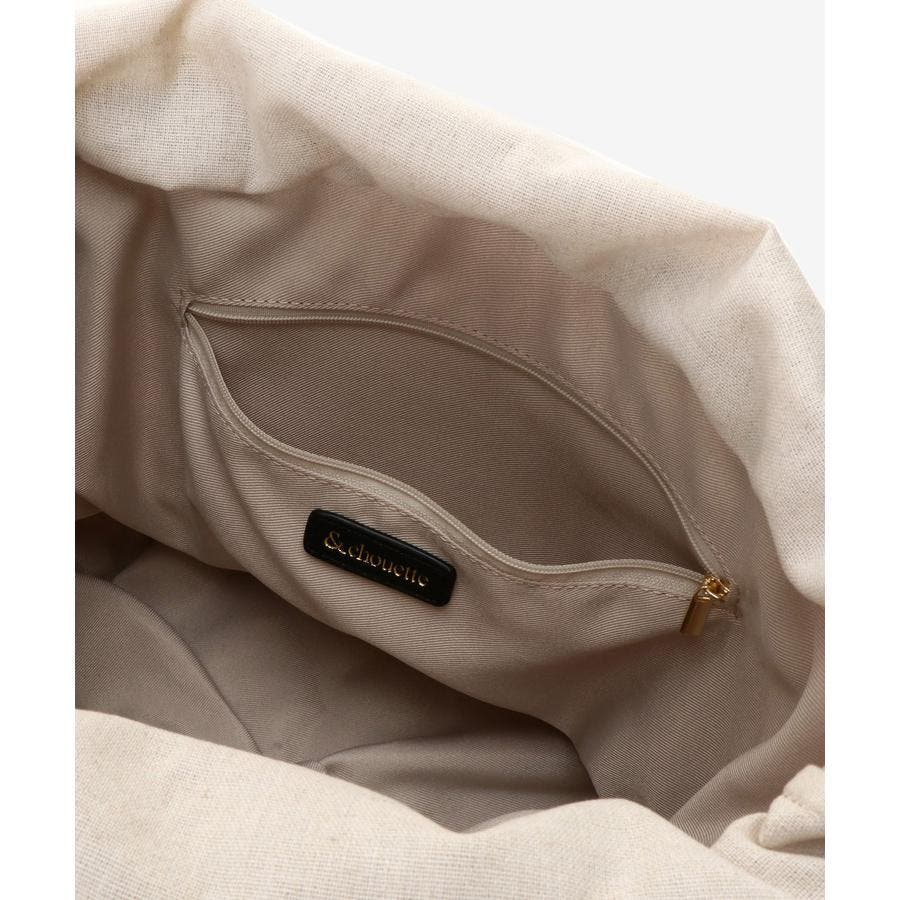シーチングの巾着は麻素材のお洋服との相性が良く抜け感があり、上品な印象に。