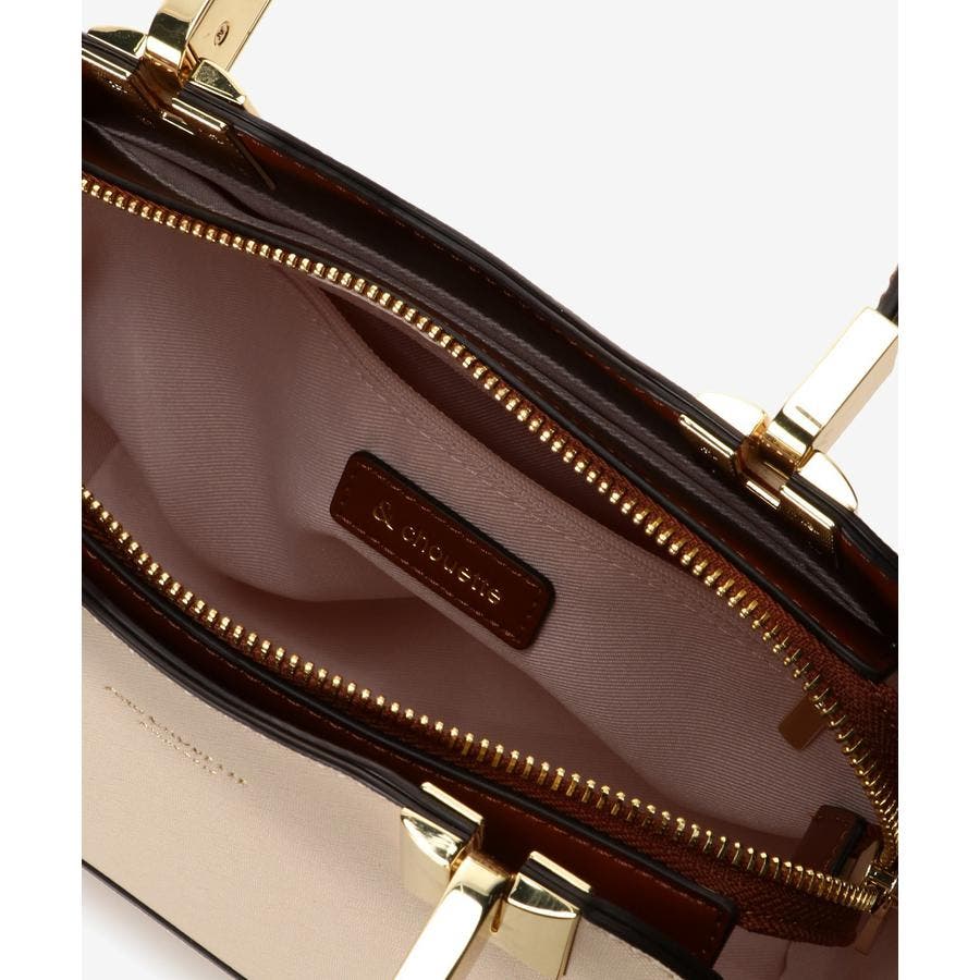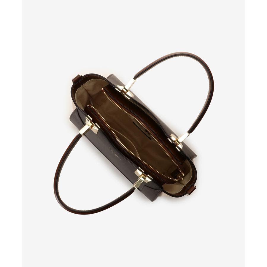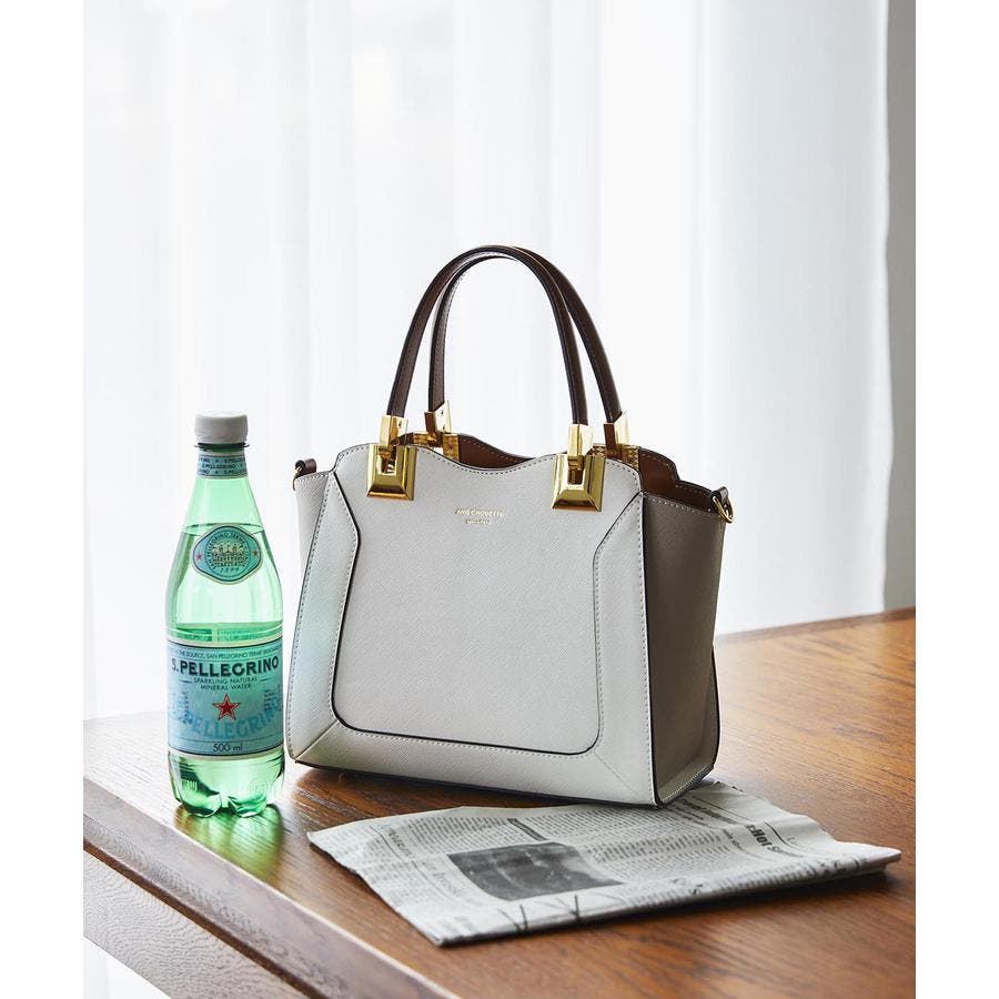 高級感のあるハンドル金具が目を惹く上品なハンドバッグです。