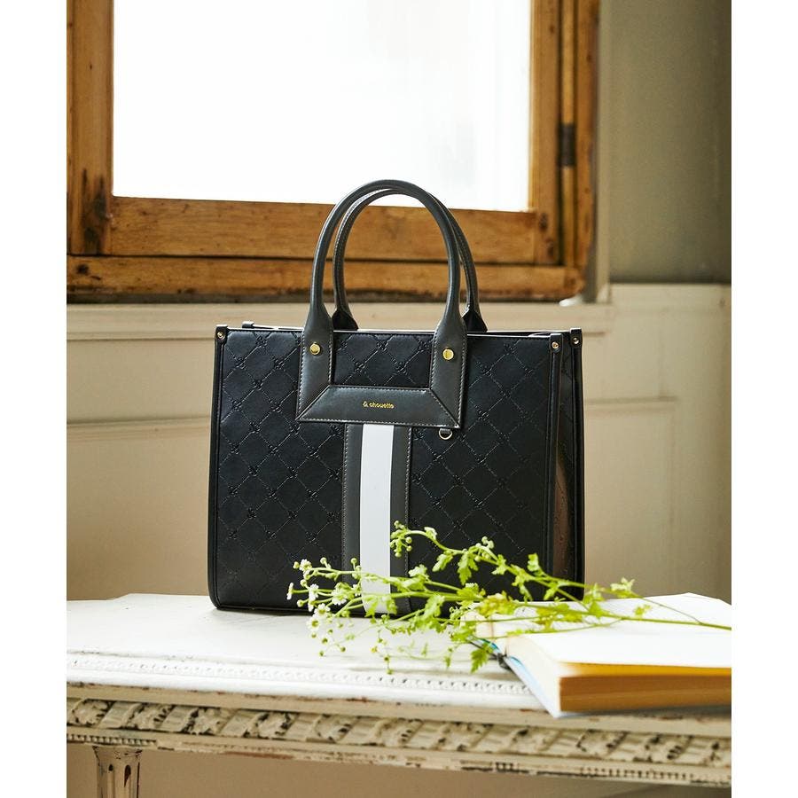 ◇& chouette(アンドシュエット)の型押しモノグラム センターライントートバッグ(大)