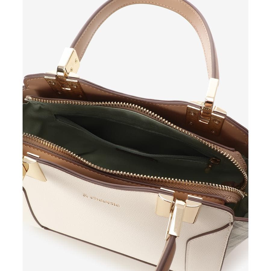 高級感のあるハンドル金具が目を惹く上品なハンドバッグです。