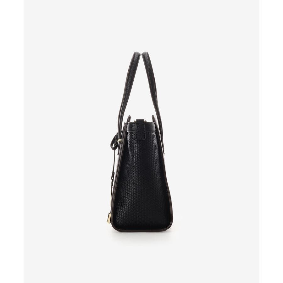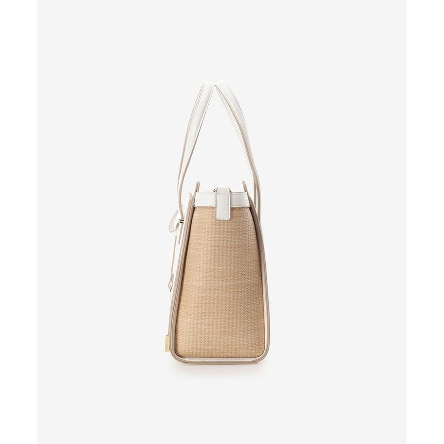 かごバッグのように見えて実はフェイクレザー素材で作られているハンドバッグ。