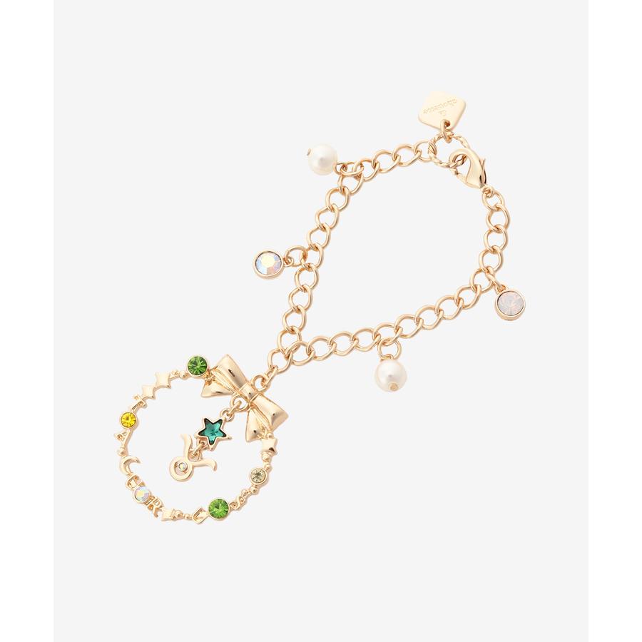 リボンを中心にシンボルカラーをイメージしたビジューとモチーフがゆらゆら揺れ、つけるだけで華やかな印象になること間違いなしのアイテムです。
