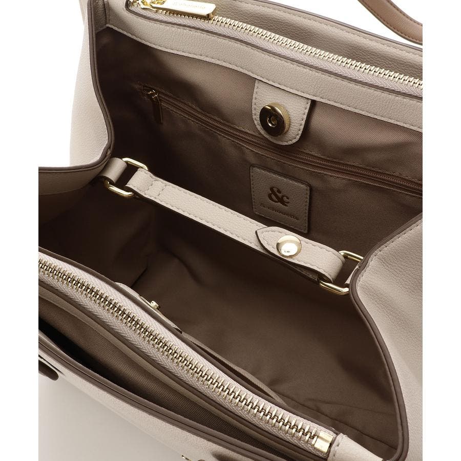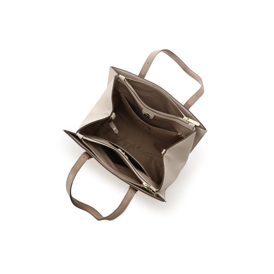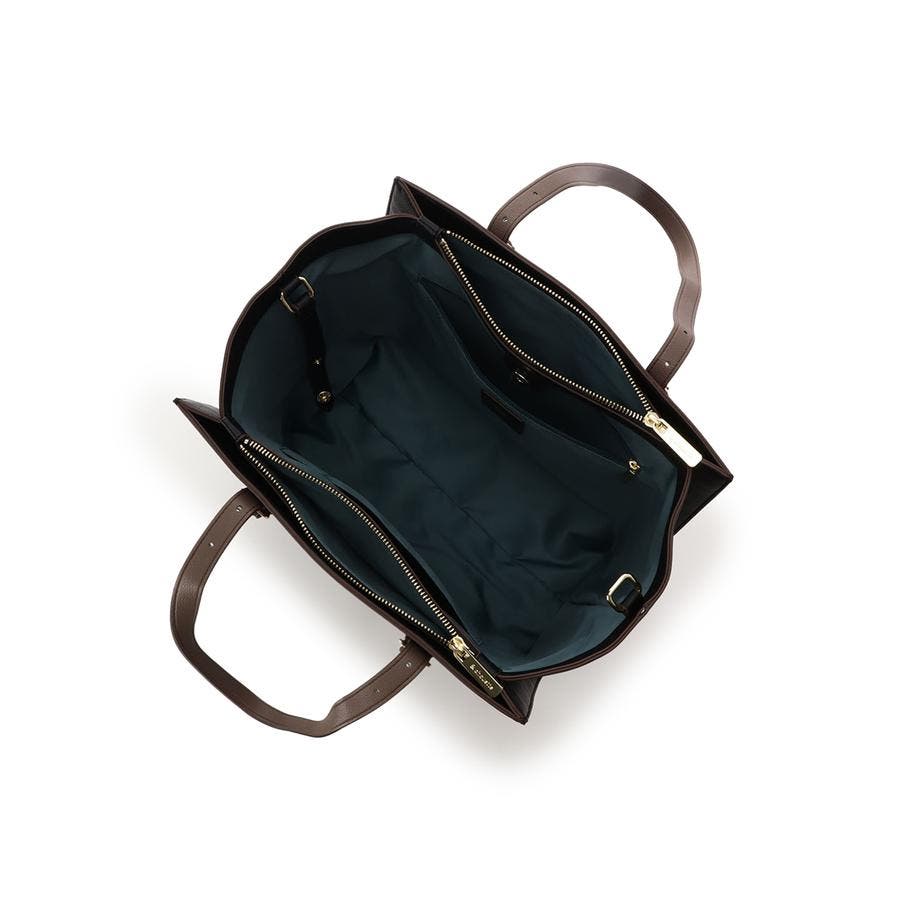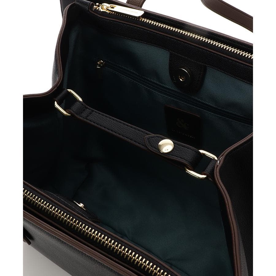 ・中央部分をスナップで絞ることで形を変えてスクエアトートとして持つこともできるアレンジ可能なバッグです。