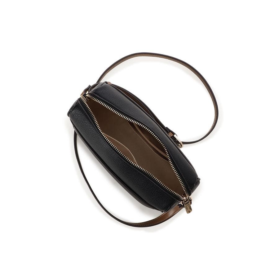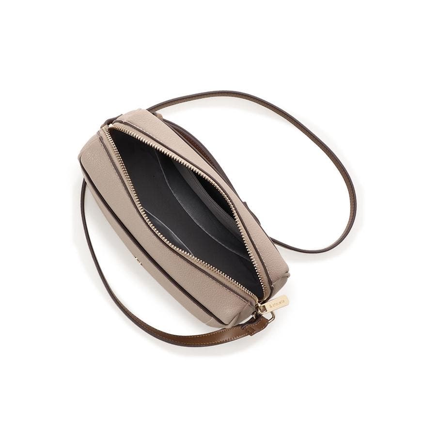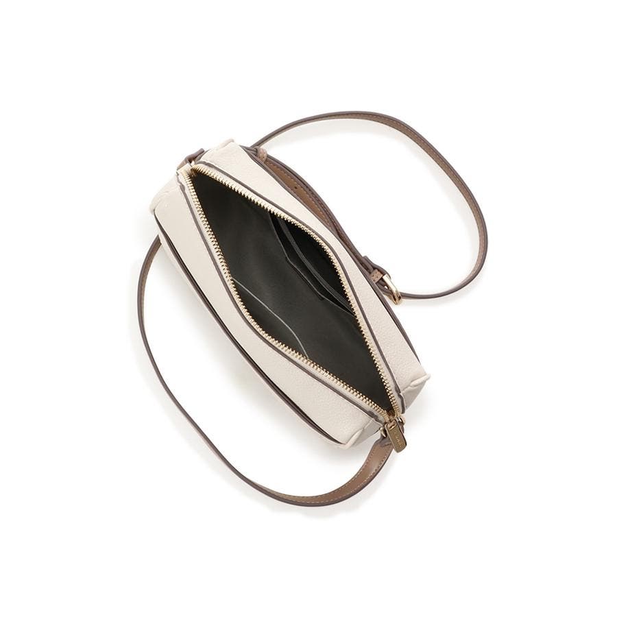 シンプルながら大きめのブランドロゴがポイントのショルダーバッグ。