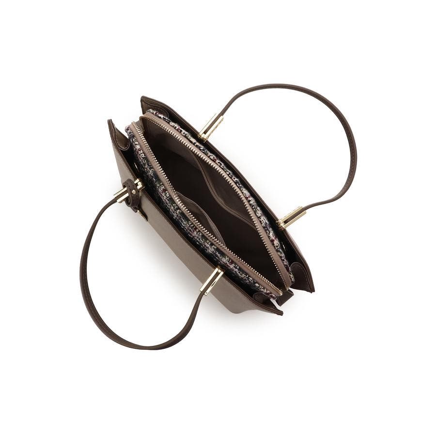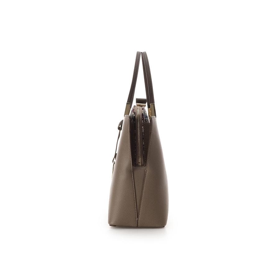 ・シンプルながらハンドル部分のゴールド金具が高級感のあるデザインのハンドバッグ。