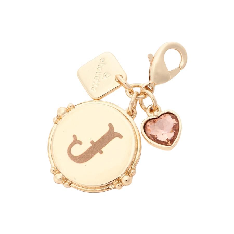 ハートビジュー付きカラーイニシャルファスナートップ J