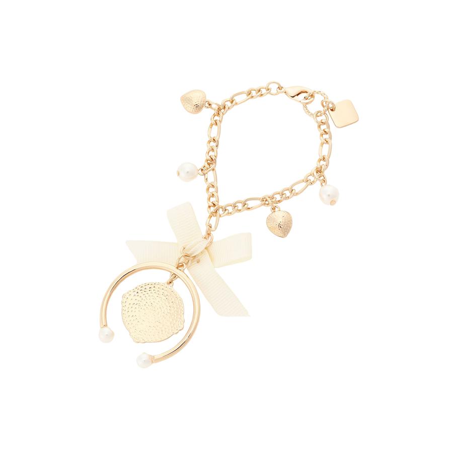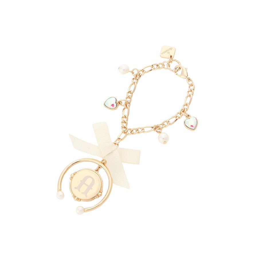 ハートビジューやイニシャルのカラーに合わせたリボンが存在感を出してくれるので、お手持ちのバッグにつけるだけで特別な印象になること間違いなし♪