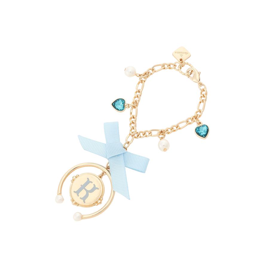 ハートビジューやイニシャルのカラーに合わせたリボンが存在感を出してくれるので、お手持ちのバッグにつけるだけで特別な印象になること間違いなし♪
