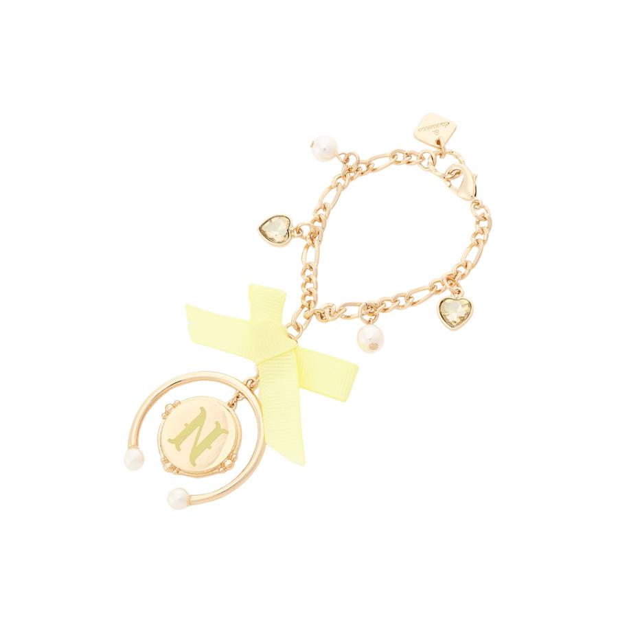 ハートビジュー付きカラーイニシャルバッグチャーム N