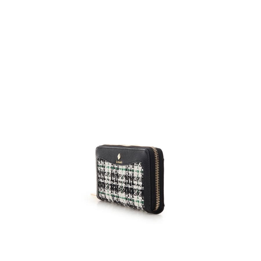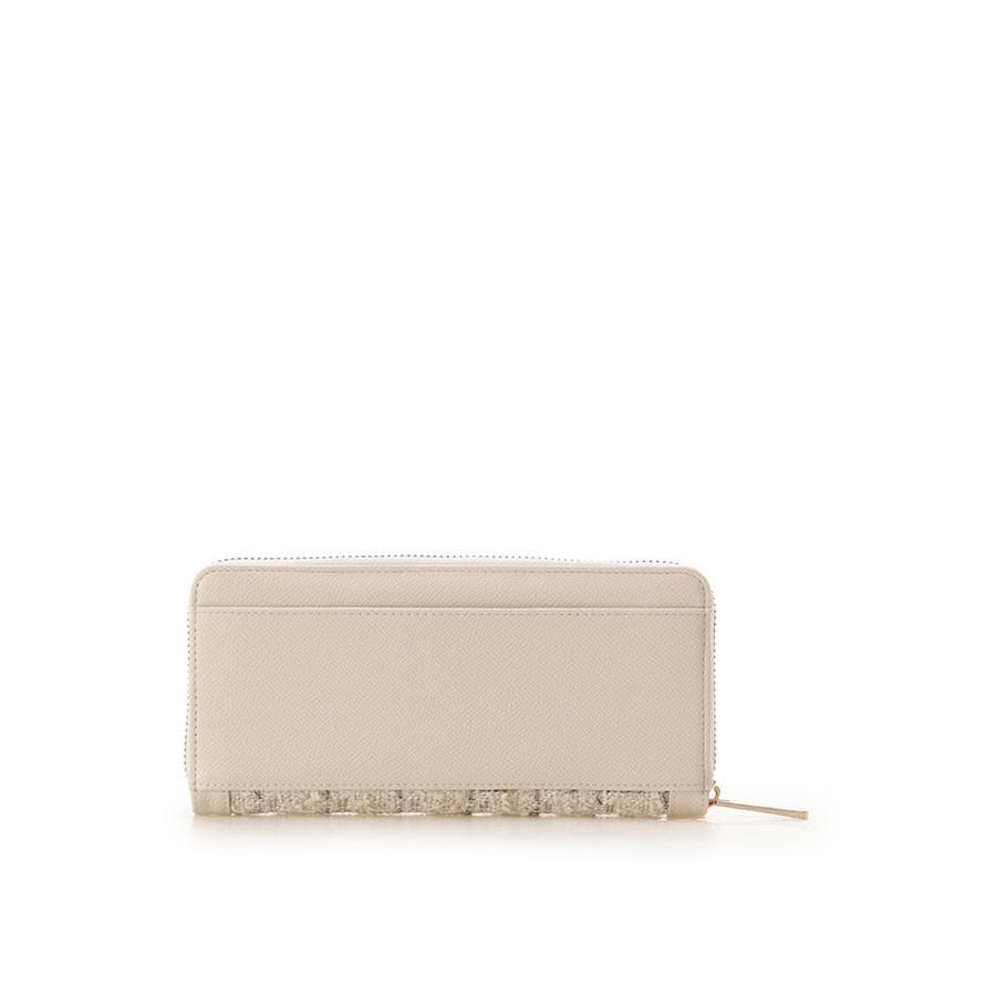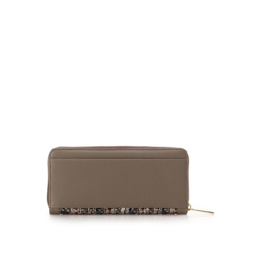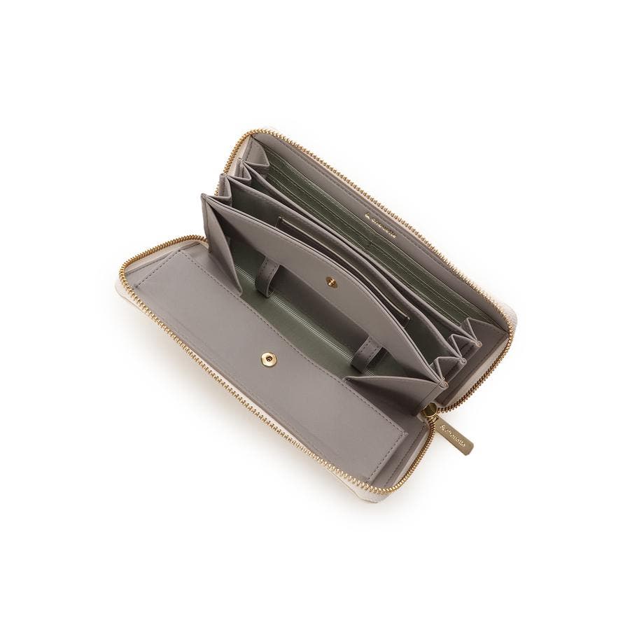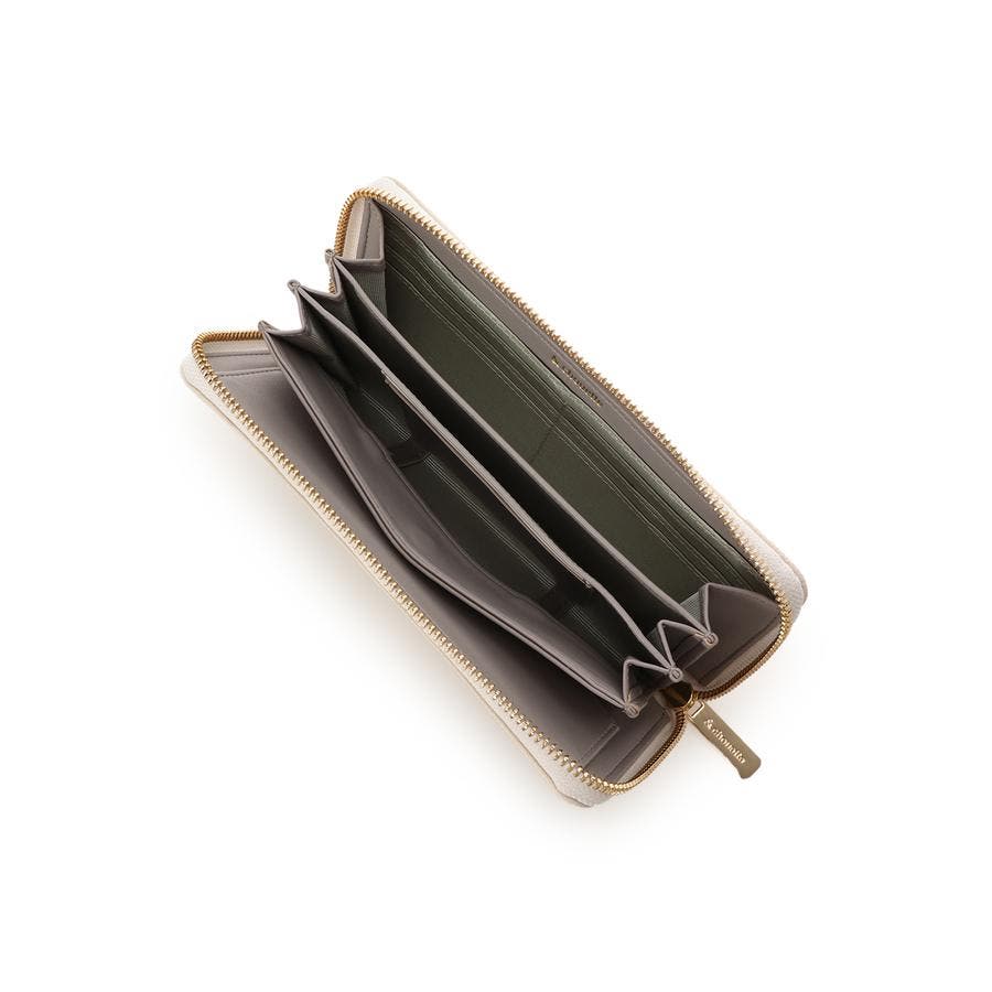 表面にツイード素材を施したバイカラーのコインスルー長財布。