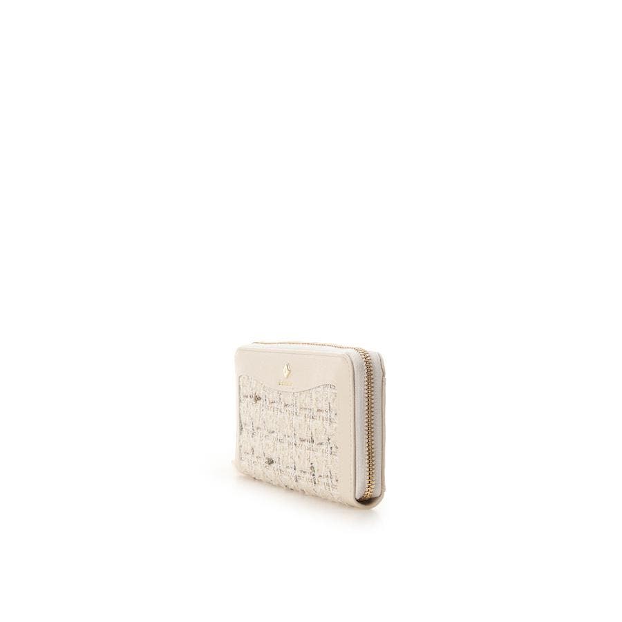 ぷっくり素材のツイードがかわいいデザインなのに機能性もばっちりなおすすめのお財布です。
