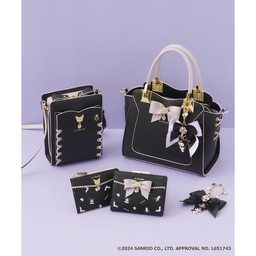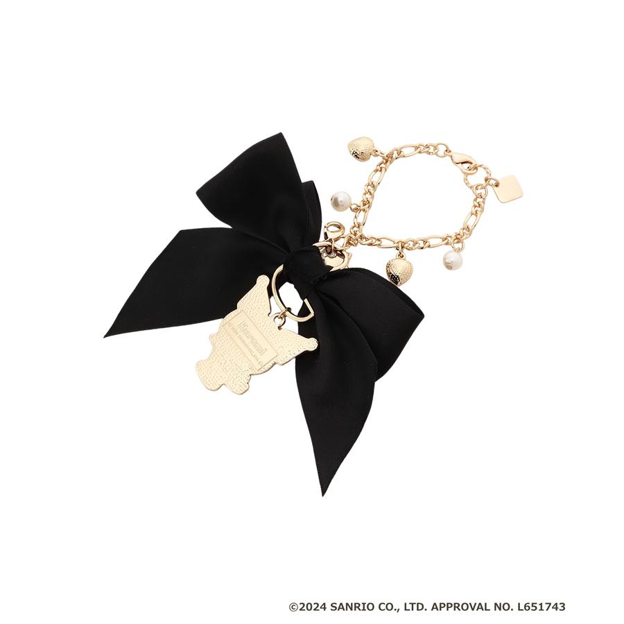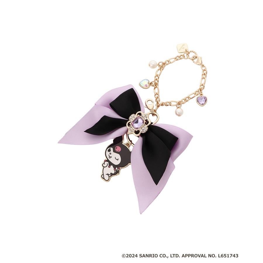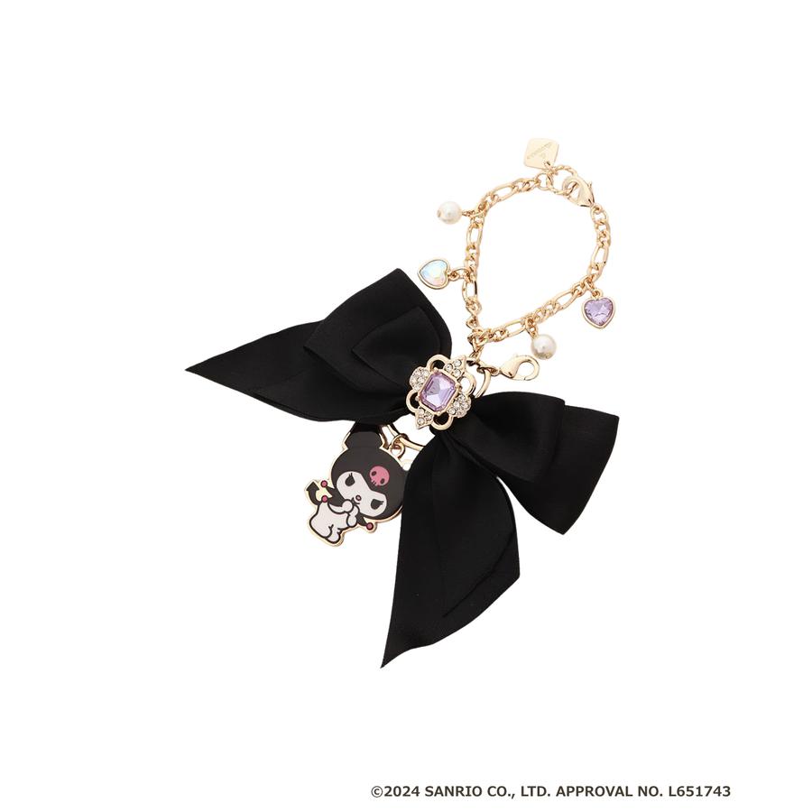 大ぶりのビジューリボンバッグチャームがブラックとバイカラーの2種類を展開。それぞれの「クロミ」のアートがキュート。