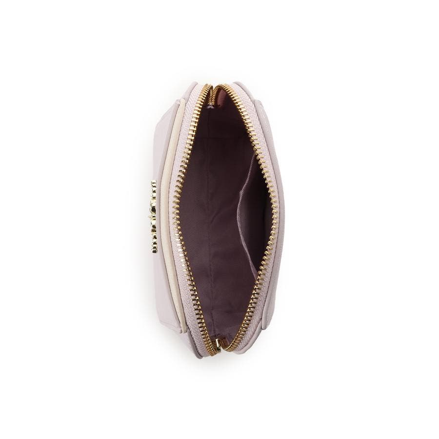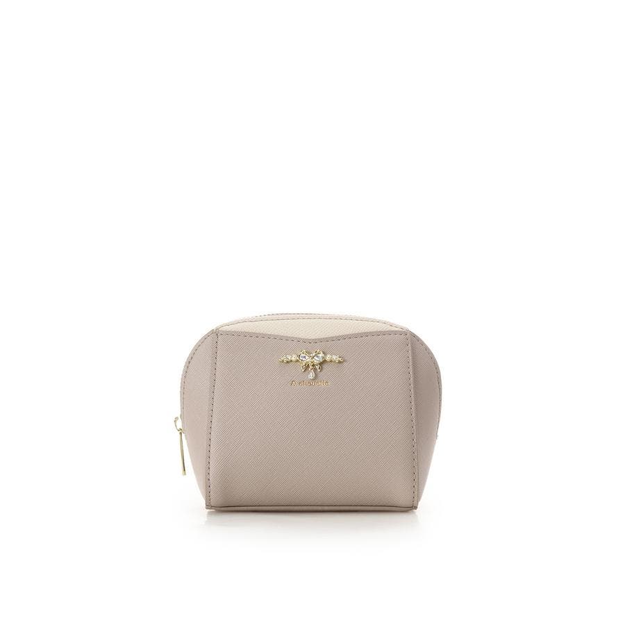 オリジナルのリボンビジューモチーフの下にゆらゆらとスウィングしながら輝くビジューがワンポイントになっているかわいさ抜群のポーチ。