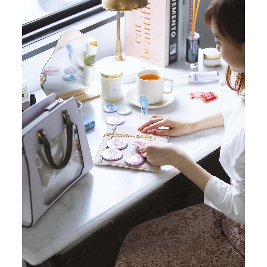 クリアポケット内部のアレンジクッションは缶バッジ等を取り付け易い厚手の素材になっています。バッグ本体とスナップボタンで固定されており、簡単に取り外してアレンジすることが可能です!