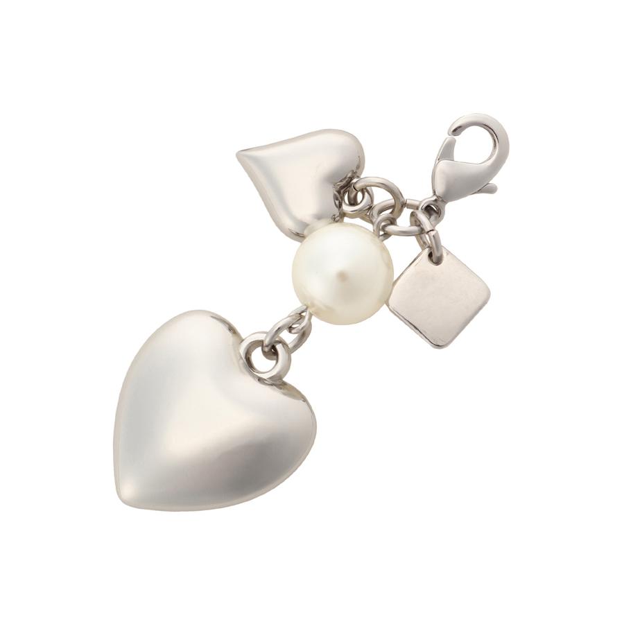 イニシャルの入ったハートとパールが付いたファスナーチャーム。