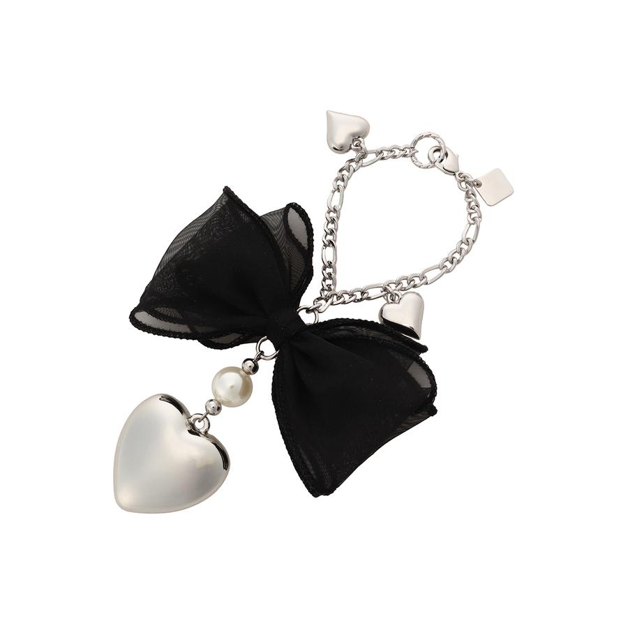 イニシャルの入ったハートに大きなリボンが付いたバッグチャーム。