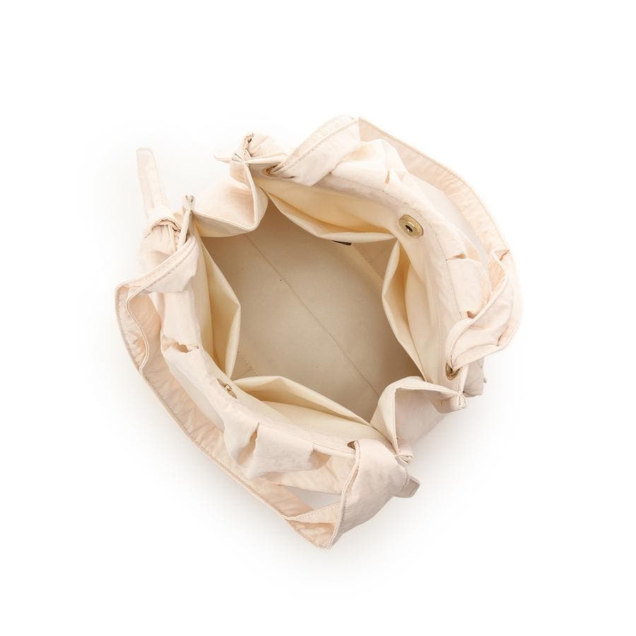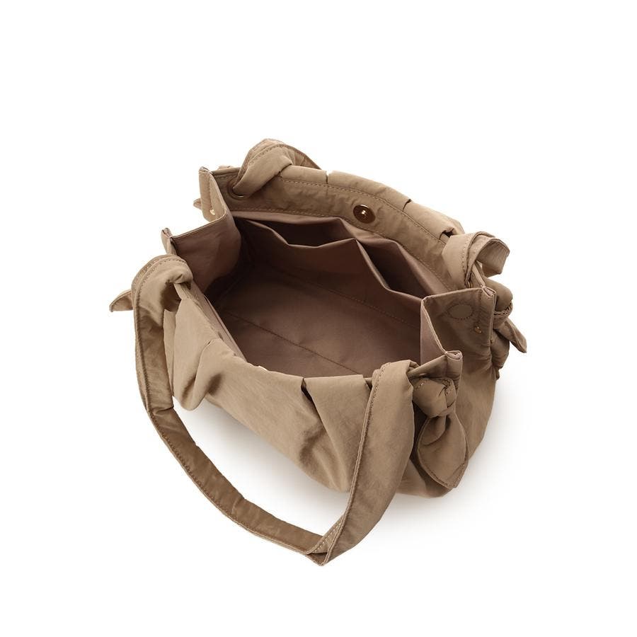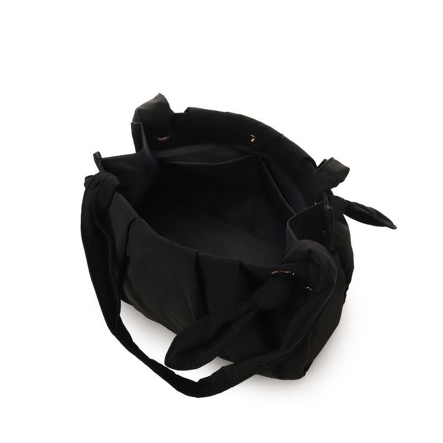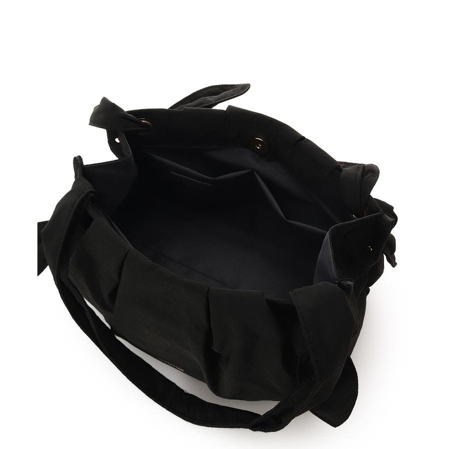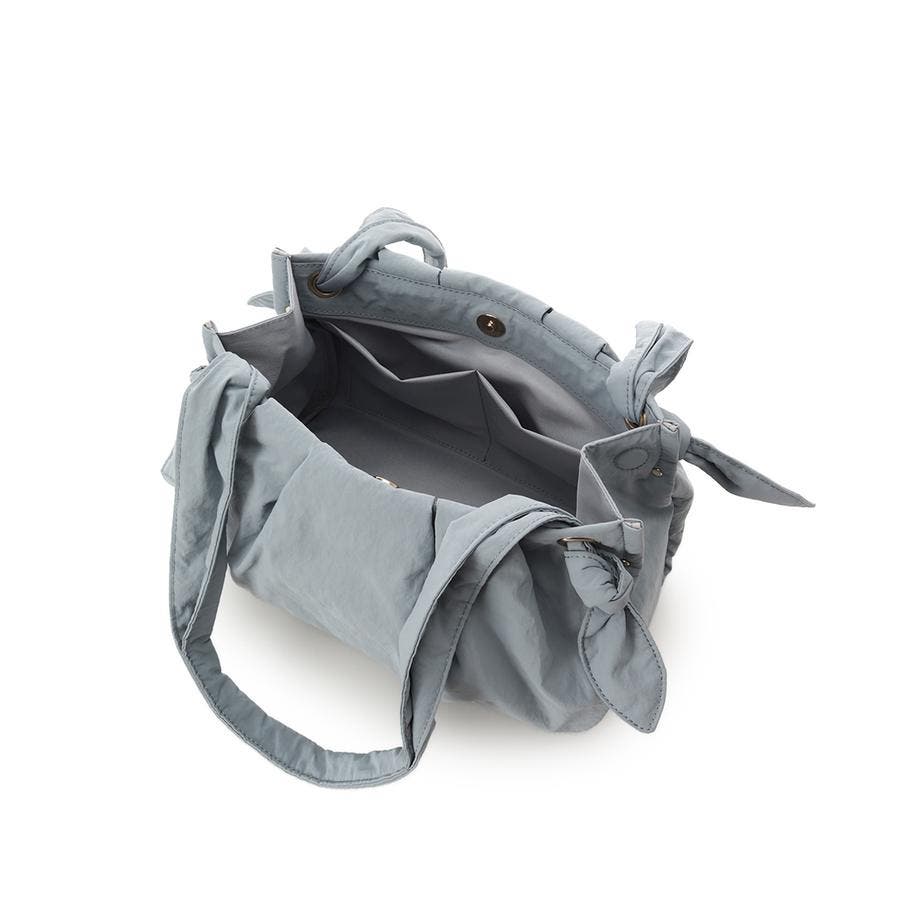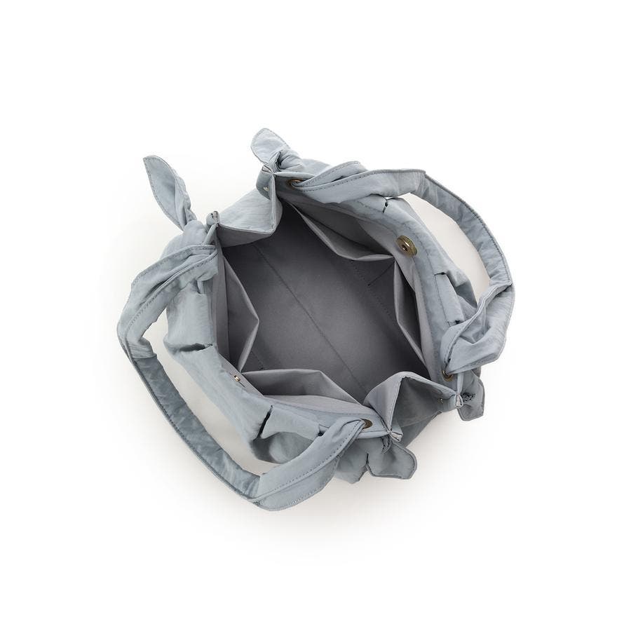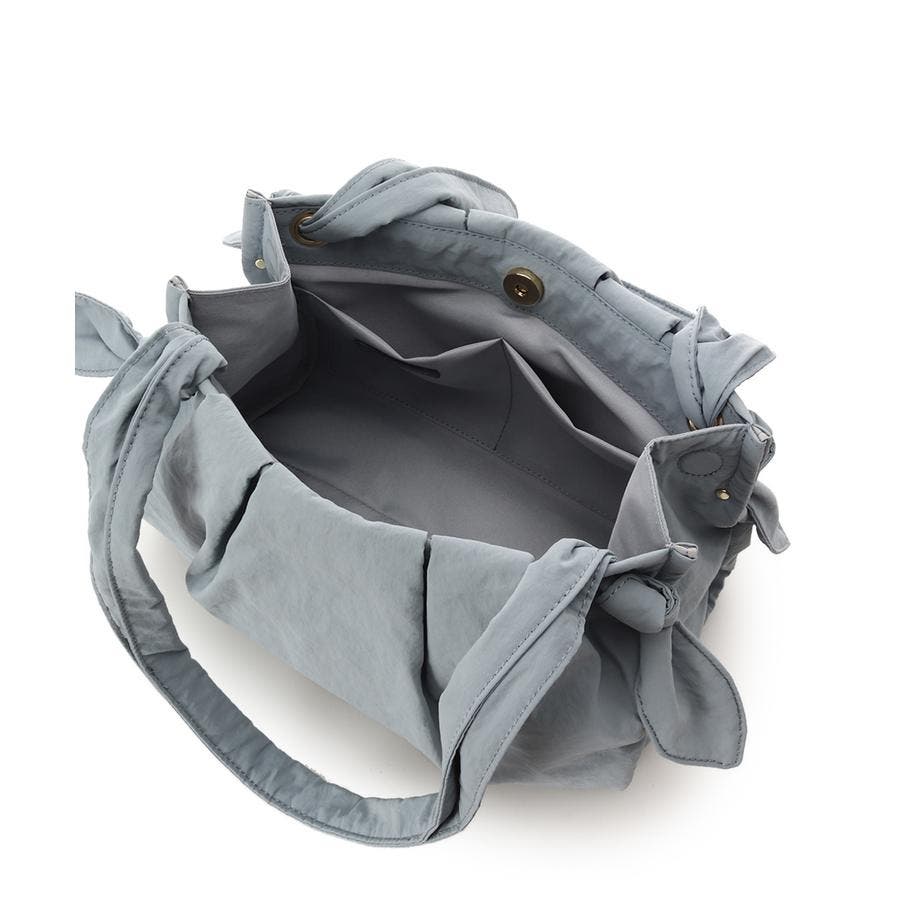 しわのある柔らかい素材とネクタイのような結び目(ノット)がポイントのバッグです。