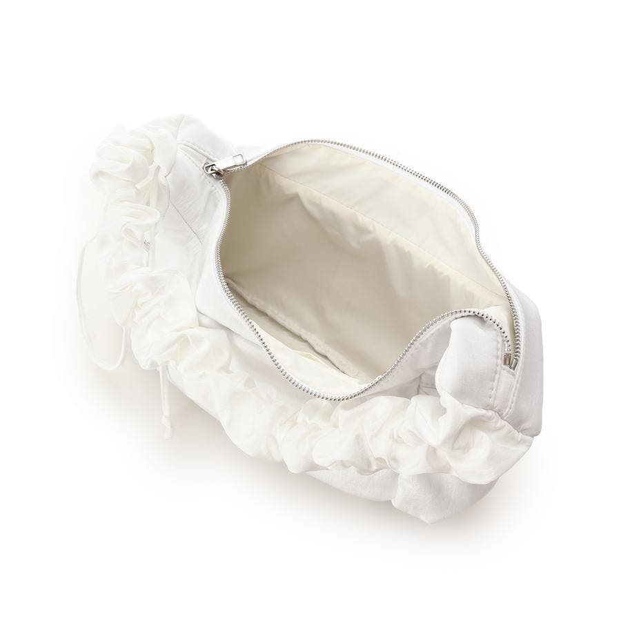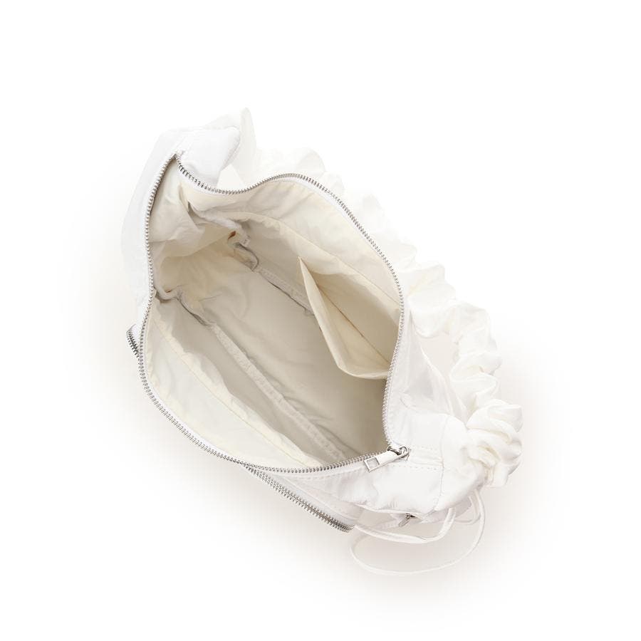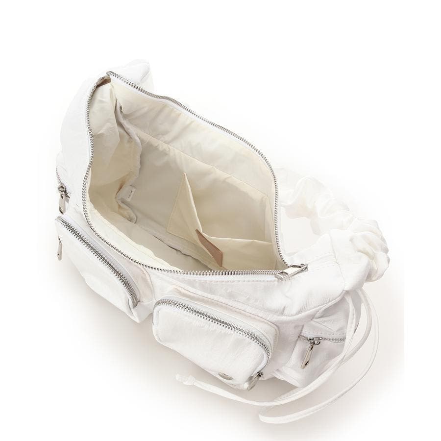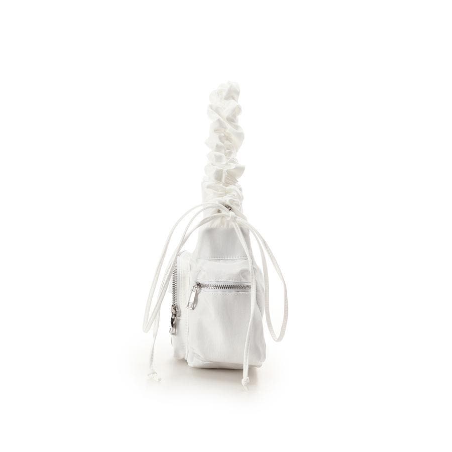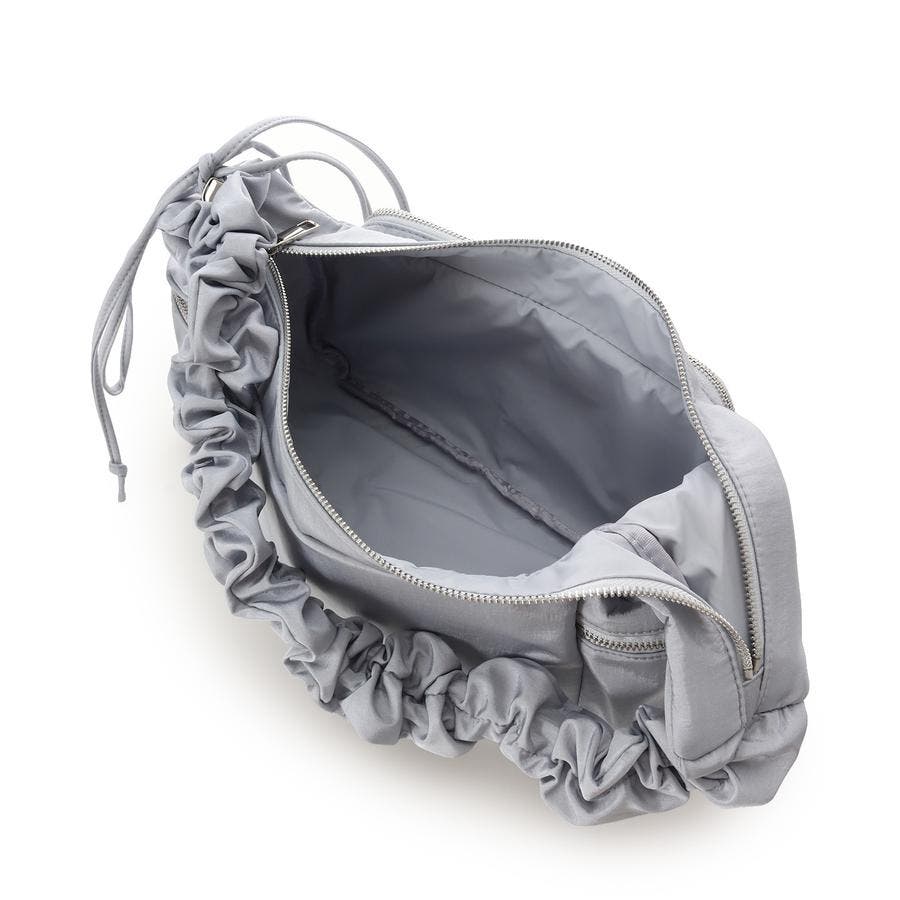 ・ショルダー部分はひもで調整ができ、伸びた状態では斜めがけに、くしゅっと絞ればギャザーのかわいい肩掛けバッグに大変身!