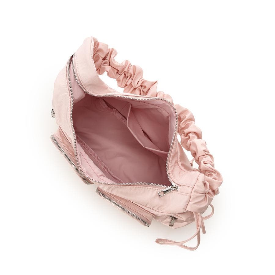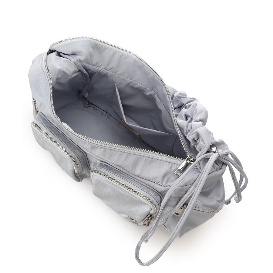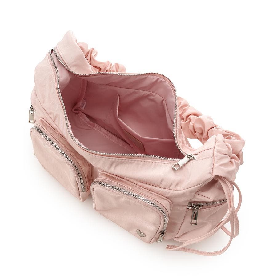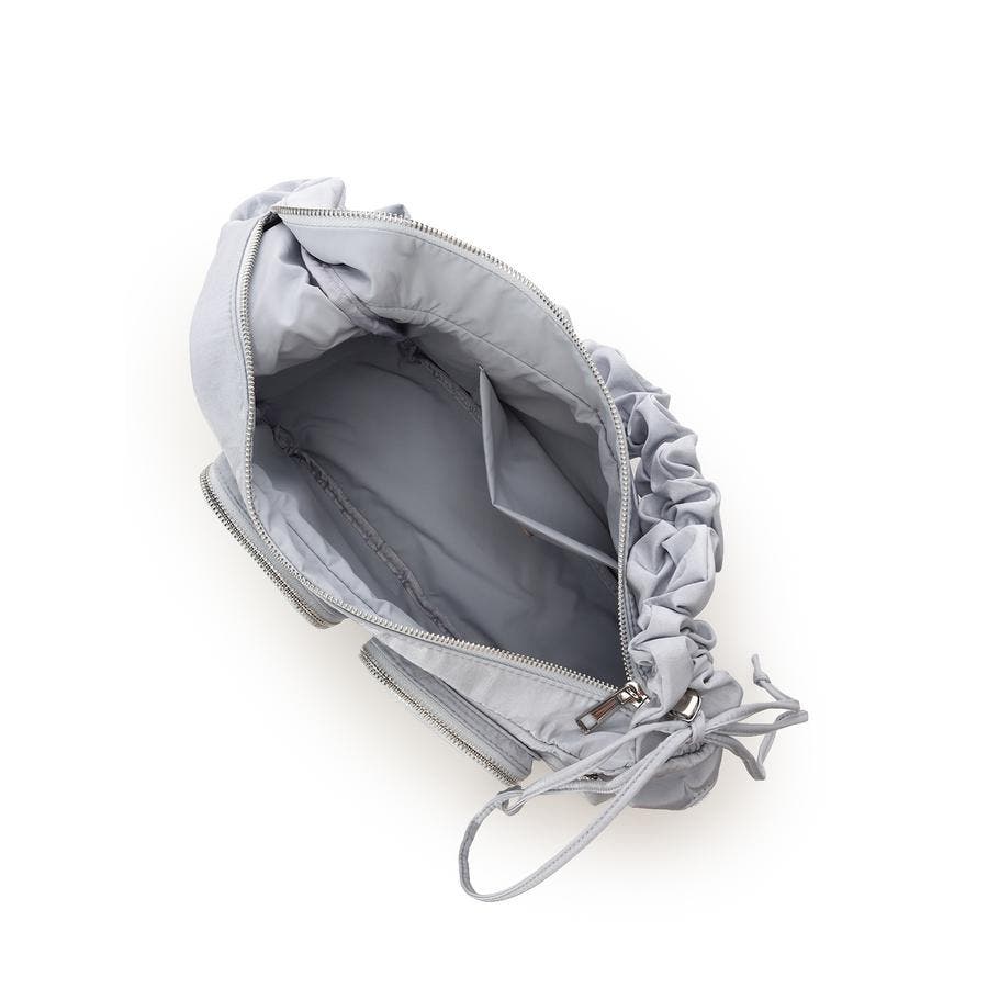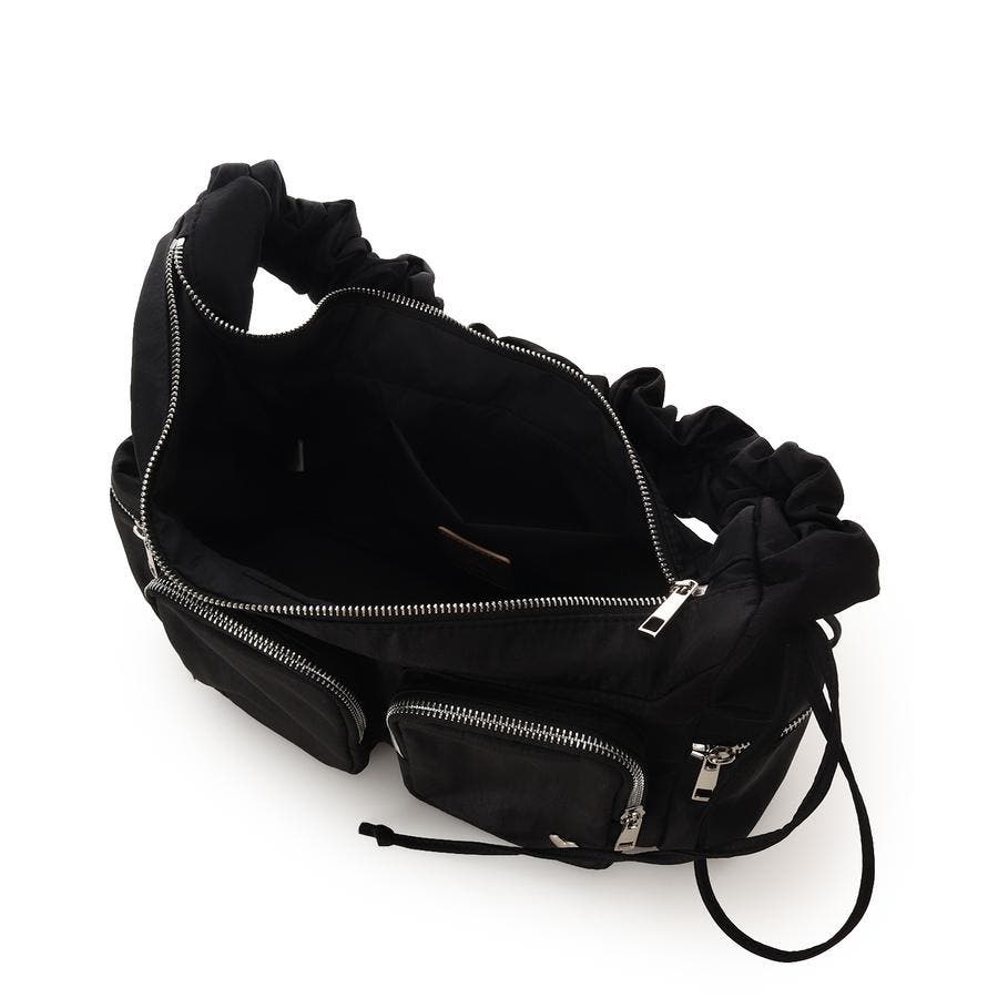 ・ショルダー部分はひもで調整ができ、伸びた状態では斜めがけに、くしゅっと絞ればギャザーのかわいい肩掛けバッグに大変身!