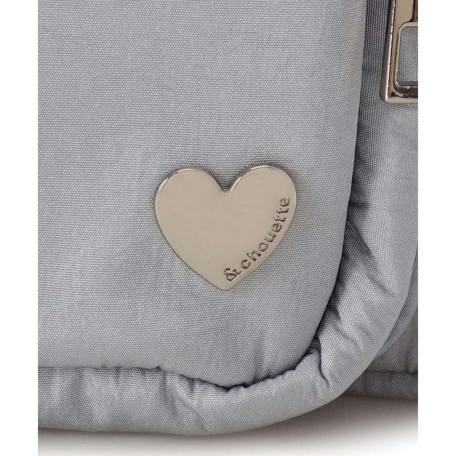 ・正面右下にワンポイントについているぷっくりハートの金具と、ショルダー調節用にもハート型金具が使われており、細かい部分にもこだわりがあふれています!