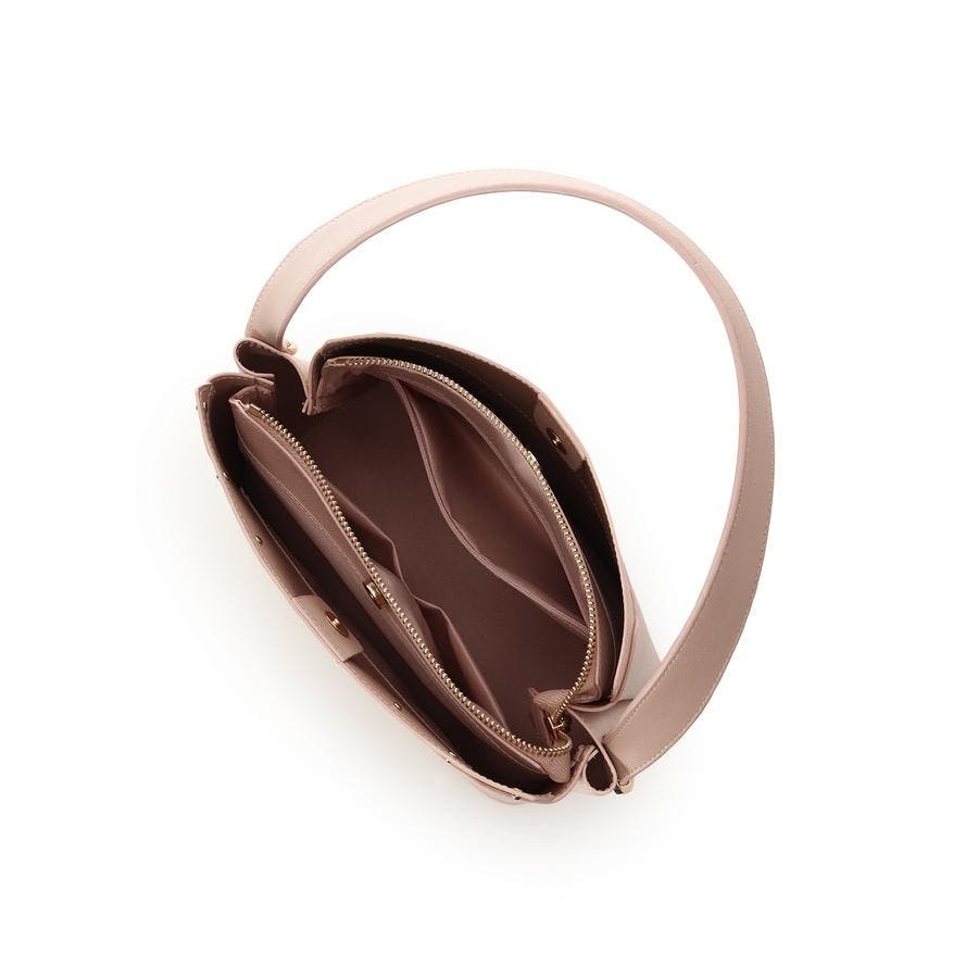 ・内側が3層になっており、すぐに取り出したいものはサイドのあおりポケットに、貴重品は真ん中のファスナー場所に分けて収納できます。