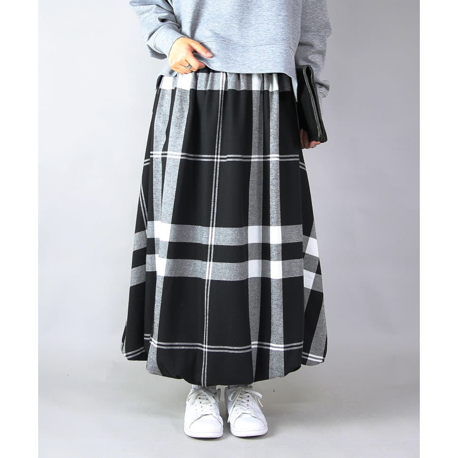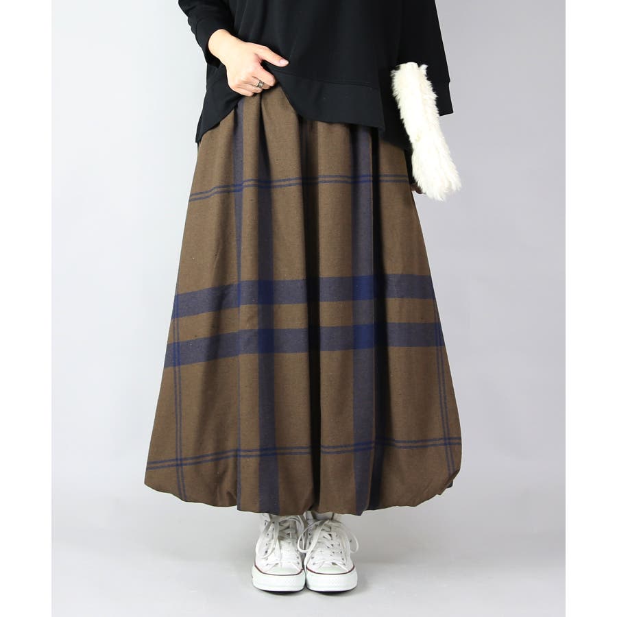 存在感抜群の大きめチェック×微起毛生地。バルーンシルエットが大人可愛い印象のスカートです。