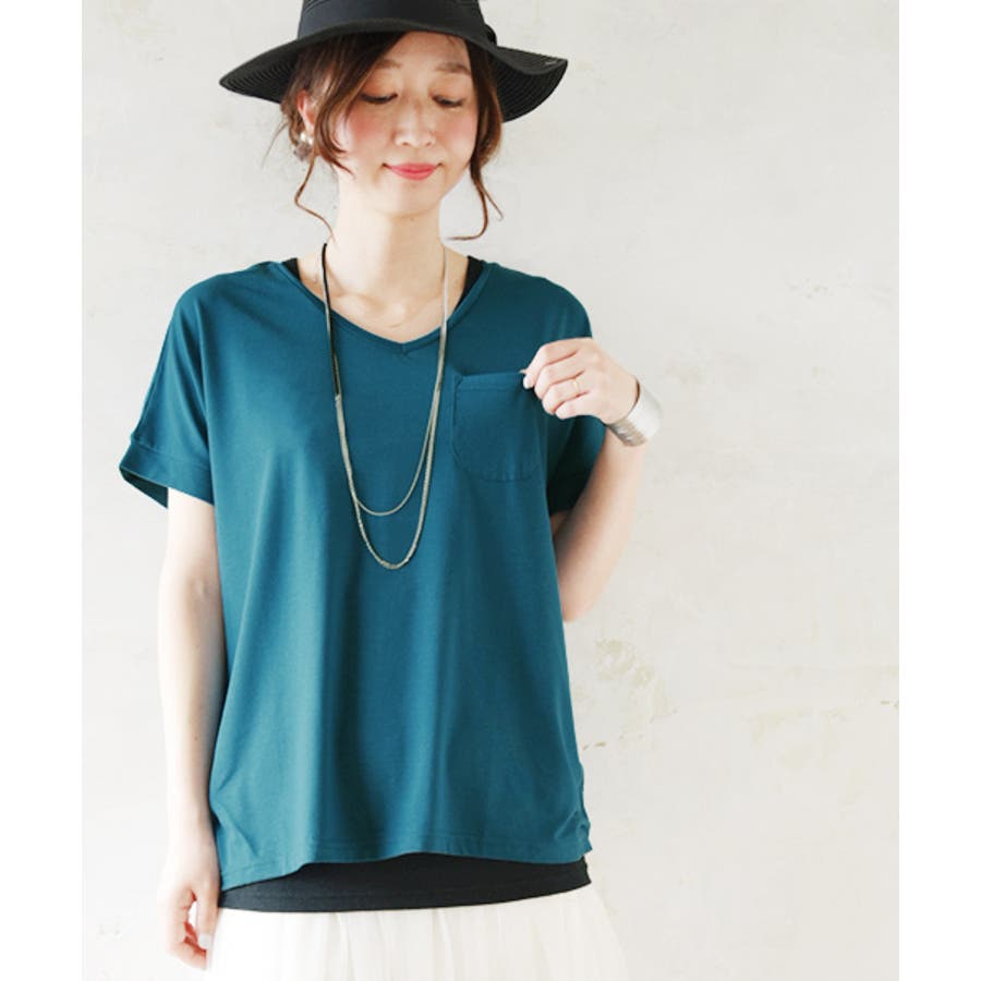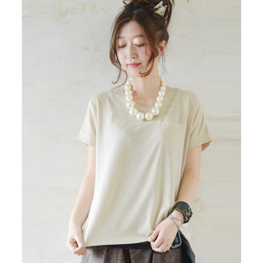もちもちストレッチVネックカットソー【M】【L】(レディース 半袖 カットソー