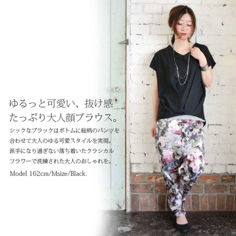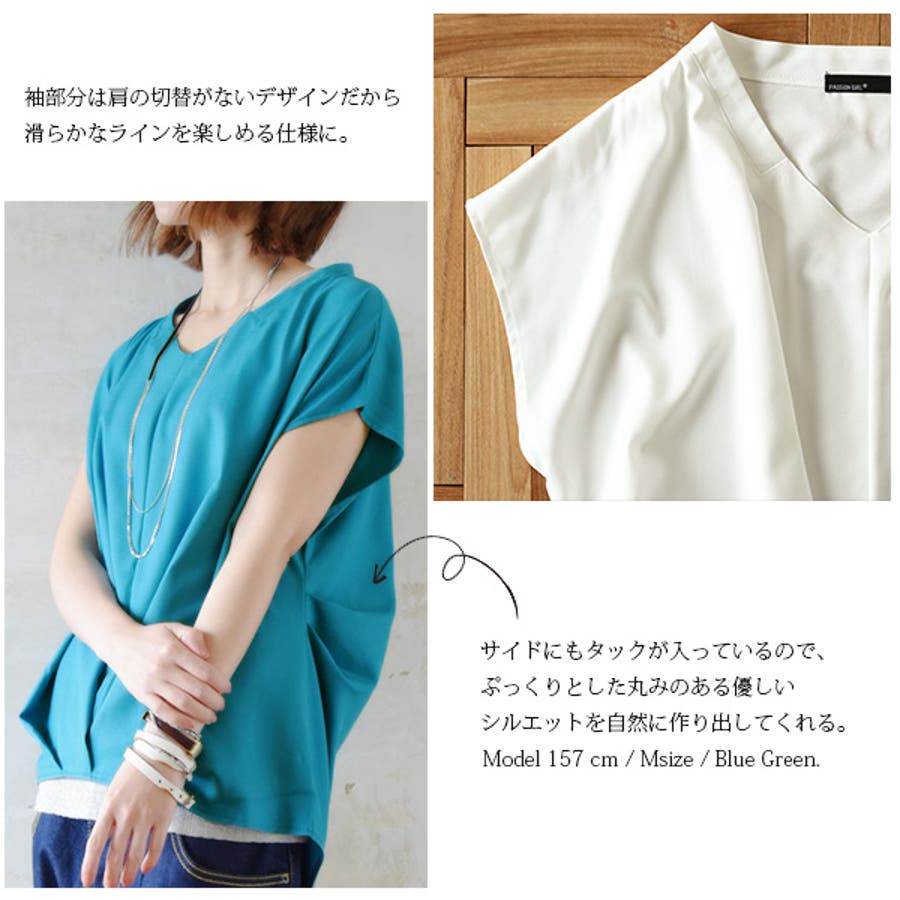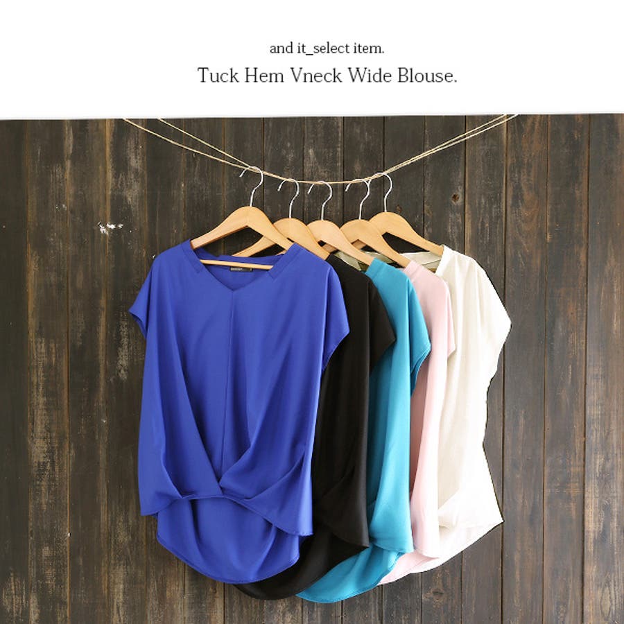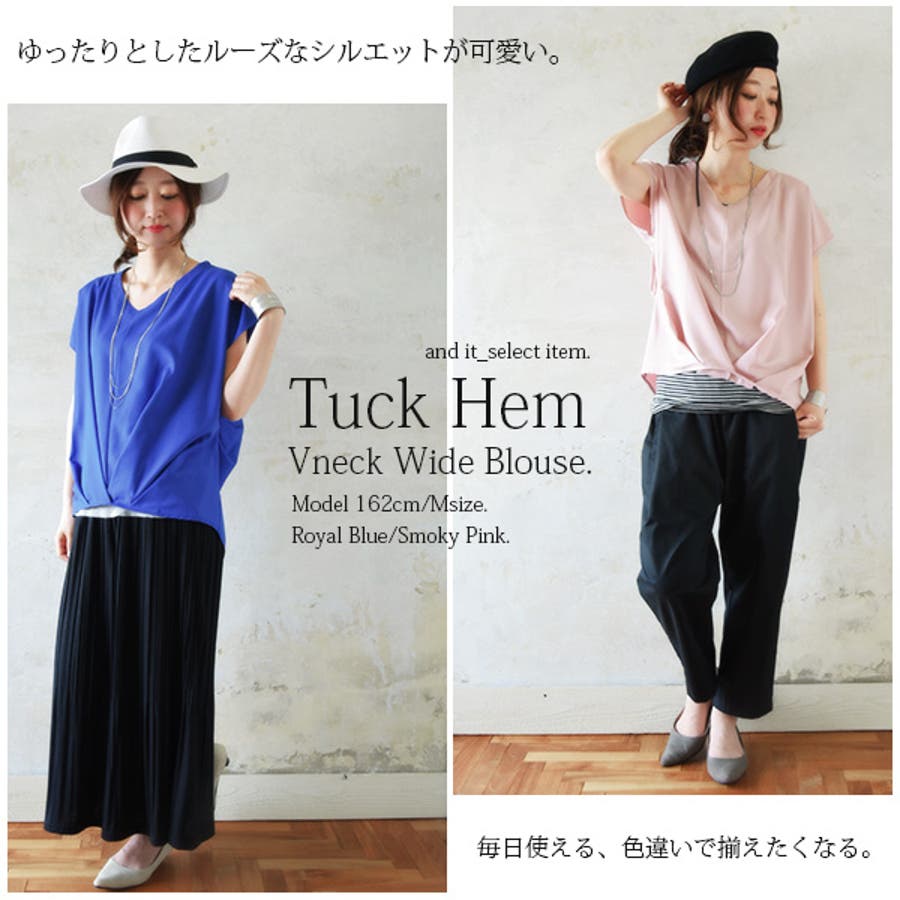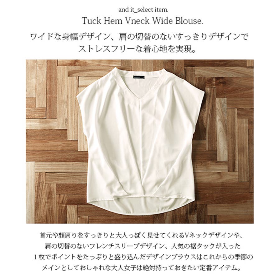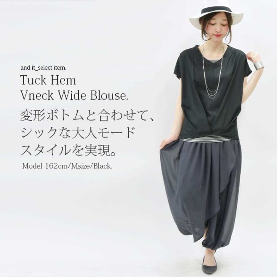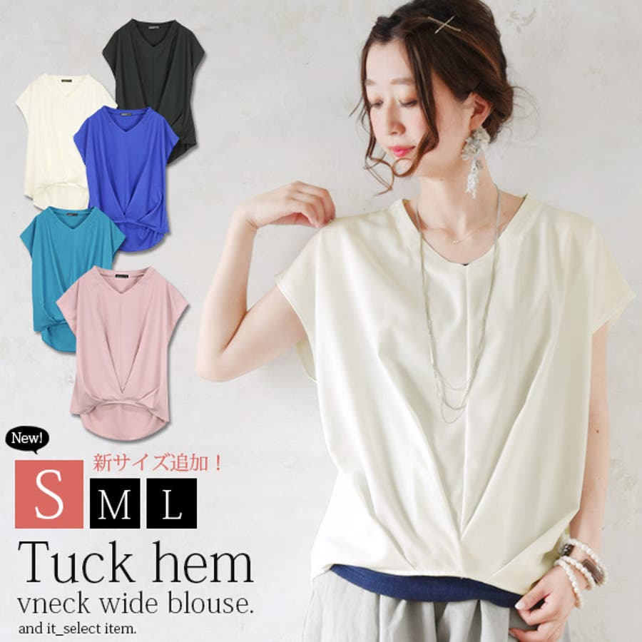 裾タックVネックワイドブラウス【S】【M】【L】【10】レディース 春夏 ホワイ…