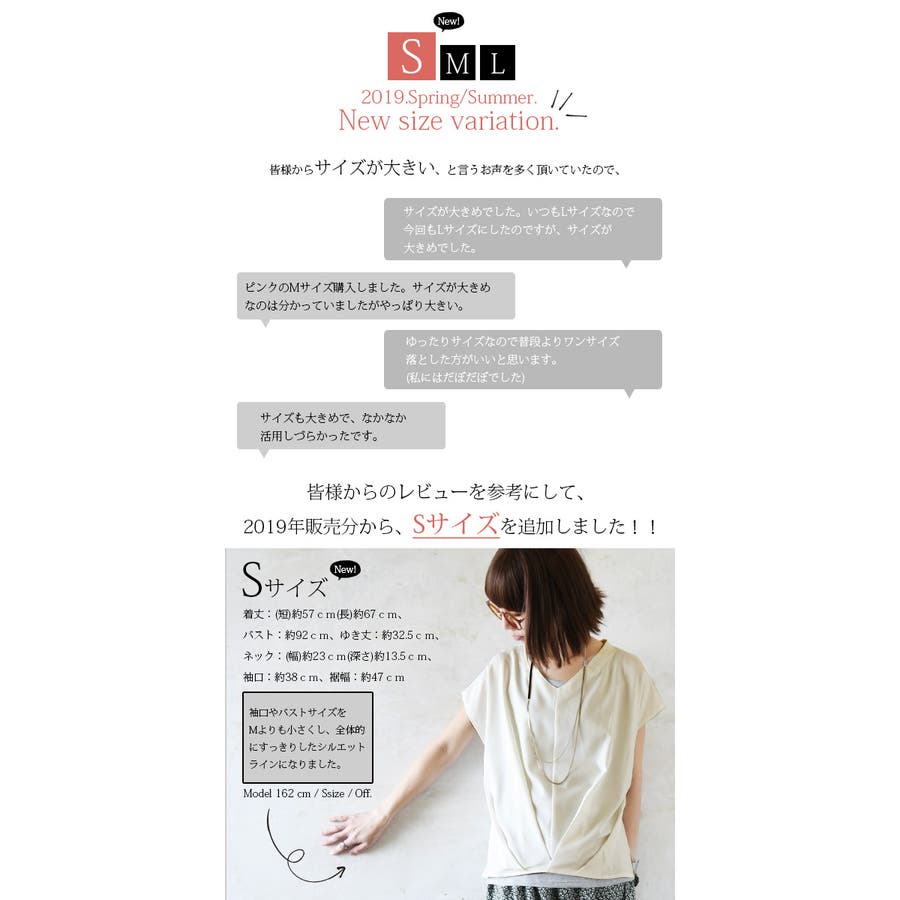 [Sサイズ]の着用で、お尻がほぼ隠れるくらいの長さに。フロントは腰骨辺りの長さで裾からインナーを覗かせて重ね着を楽しむことができます!ボディラインの出ない程良くゆったりとしたフォルムで着心地が楽でした。[Mサイズ]だと、ヒップが余裕で隠れるロング丈で、後ろ姿もドレープ感たっぷりでした♪よりルーズな雰囲気が可愛かったです。