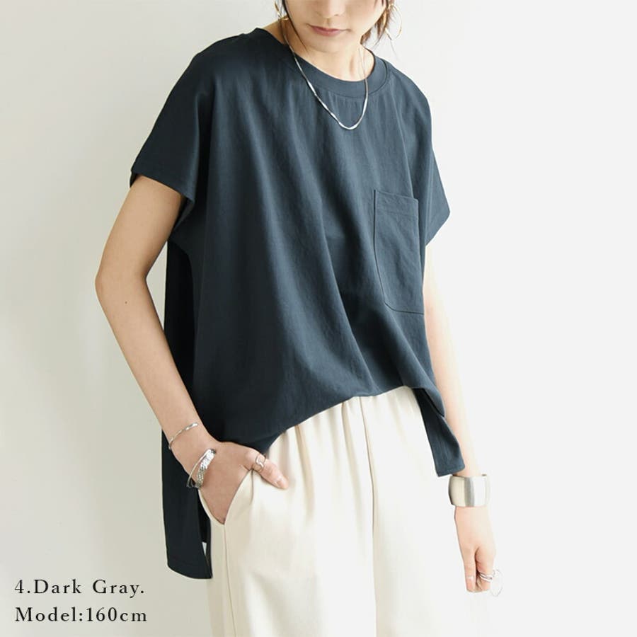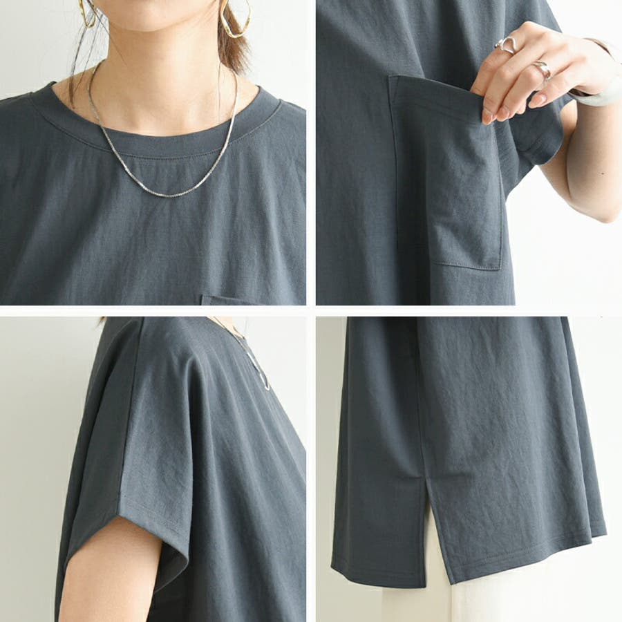 【ダークグレー】ひんやりポケット付きBIGTシャツ カットソー レディース