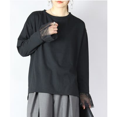 袖チュール長袖tシャツ トップス レディース