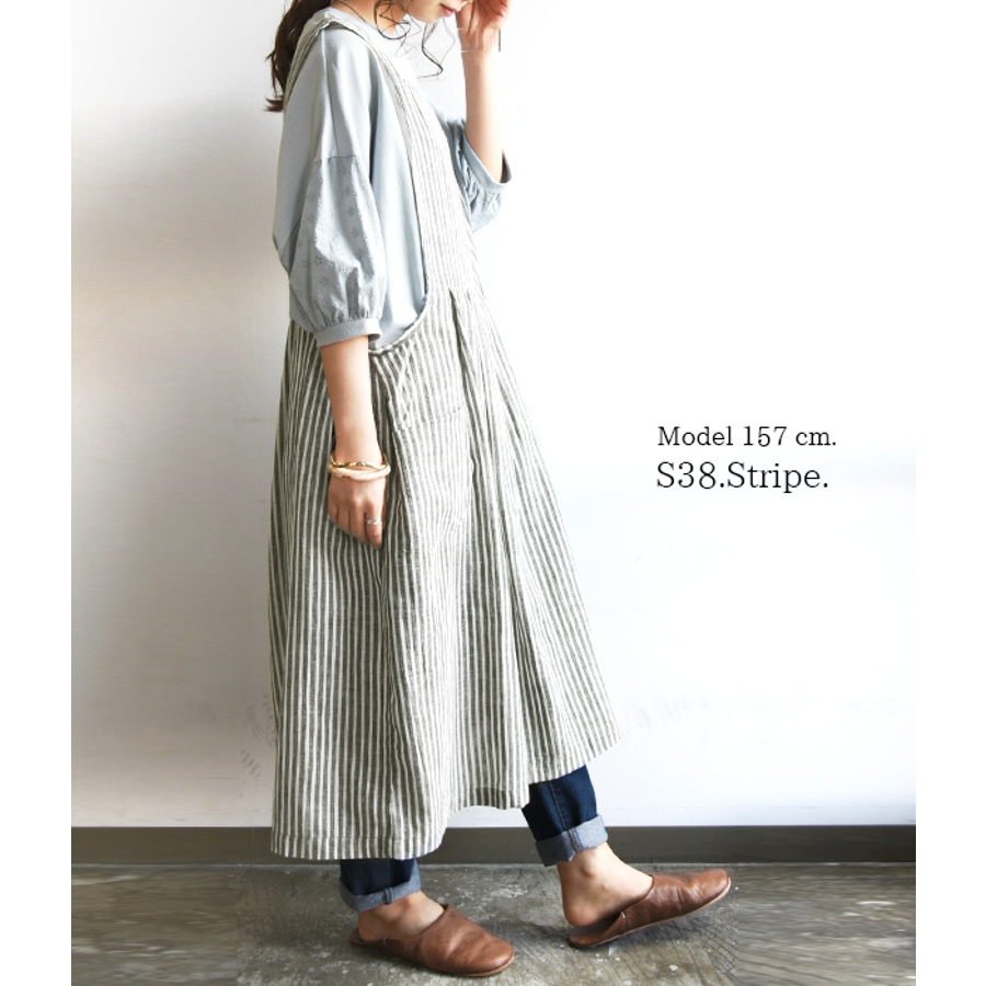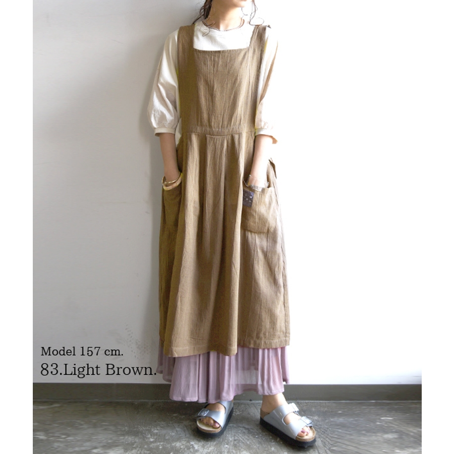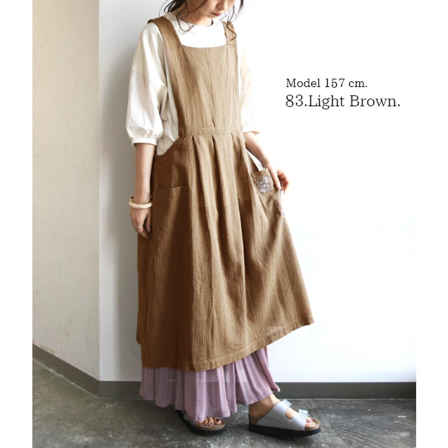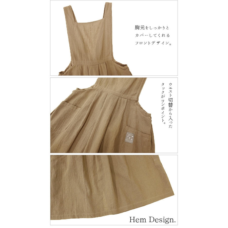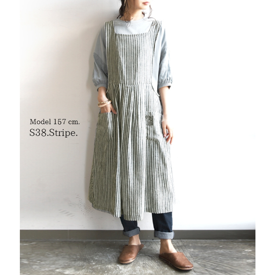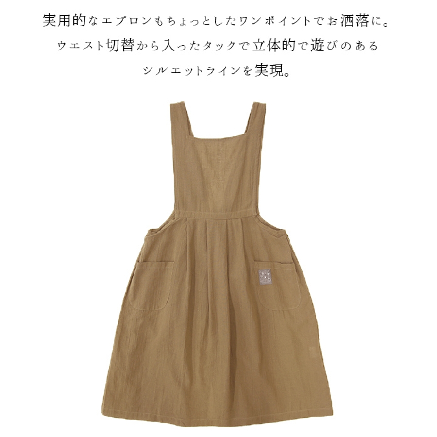 通気性に優れ清涼感のあるコットンリネン素材を使用したワンピース風のエプロン。洗いをかけるたびに肌に馴染む風合いを楽しめます。ウエスト切替にタックをあしらい、ふんわりと程よいボリュームのある女性らしいシルエットです♪両サイドには便利なポケットがついているのも嬉しいポイント!デイリー使いから母の日のプレゼントとしてもオススメです☆