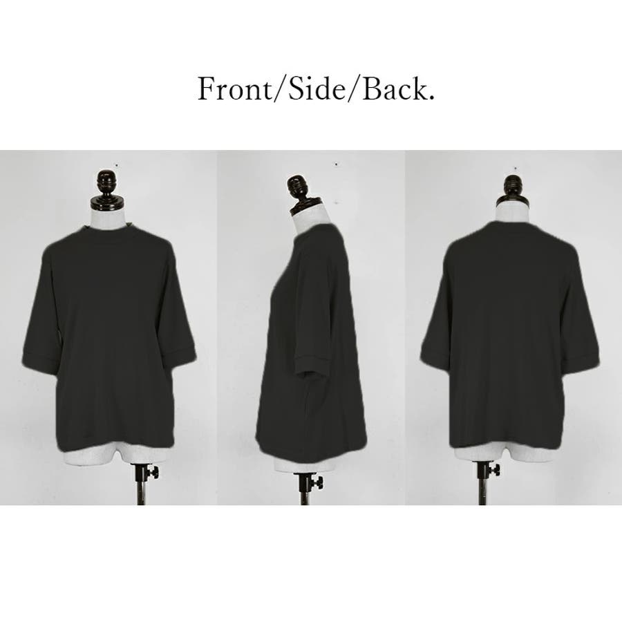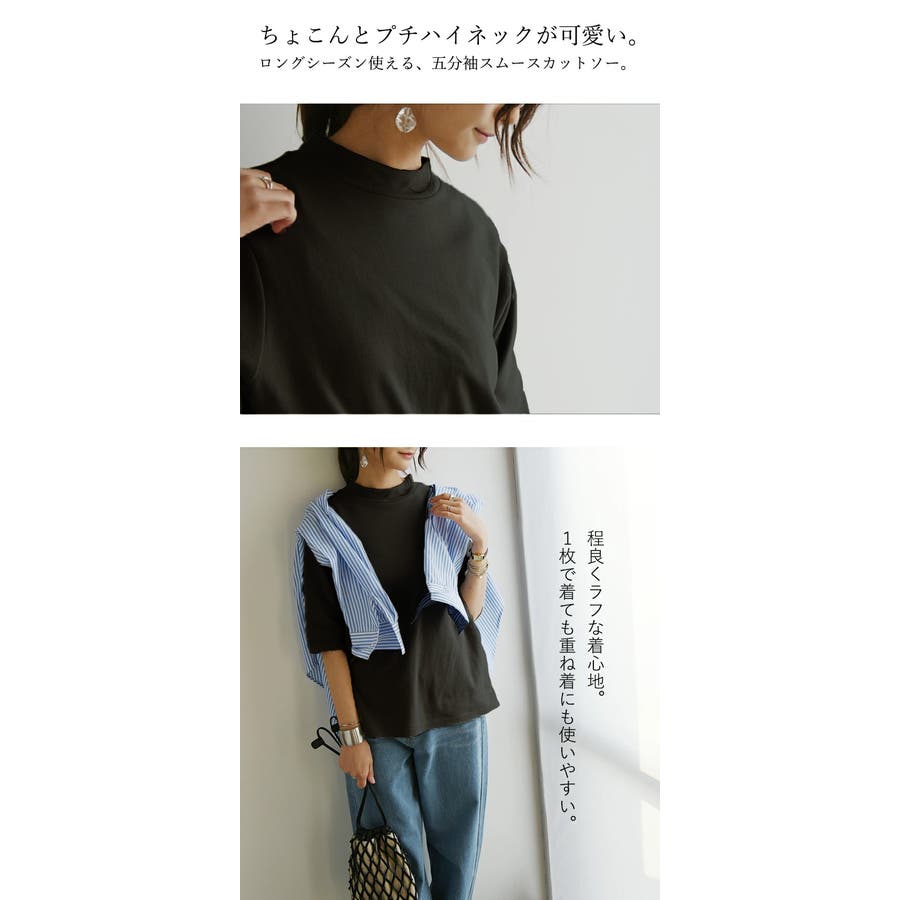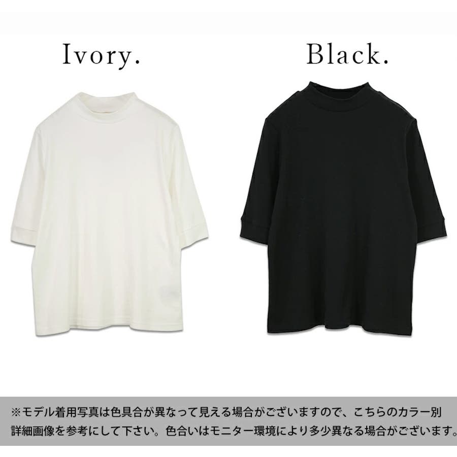 【ブラック(日本製)】ハイネック5分袖コットンスムースカットソー カットソー レディース