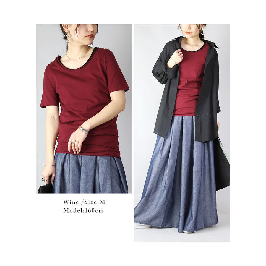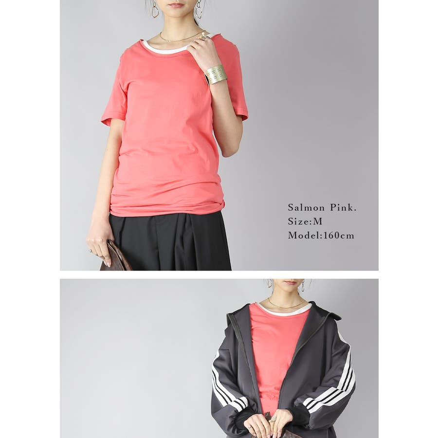 これからの季節にピッタリな薄手のカット地 シンプルカラー半袖ロングカットソー
