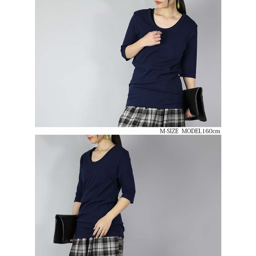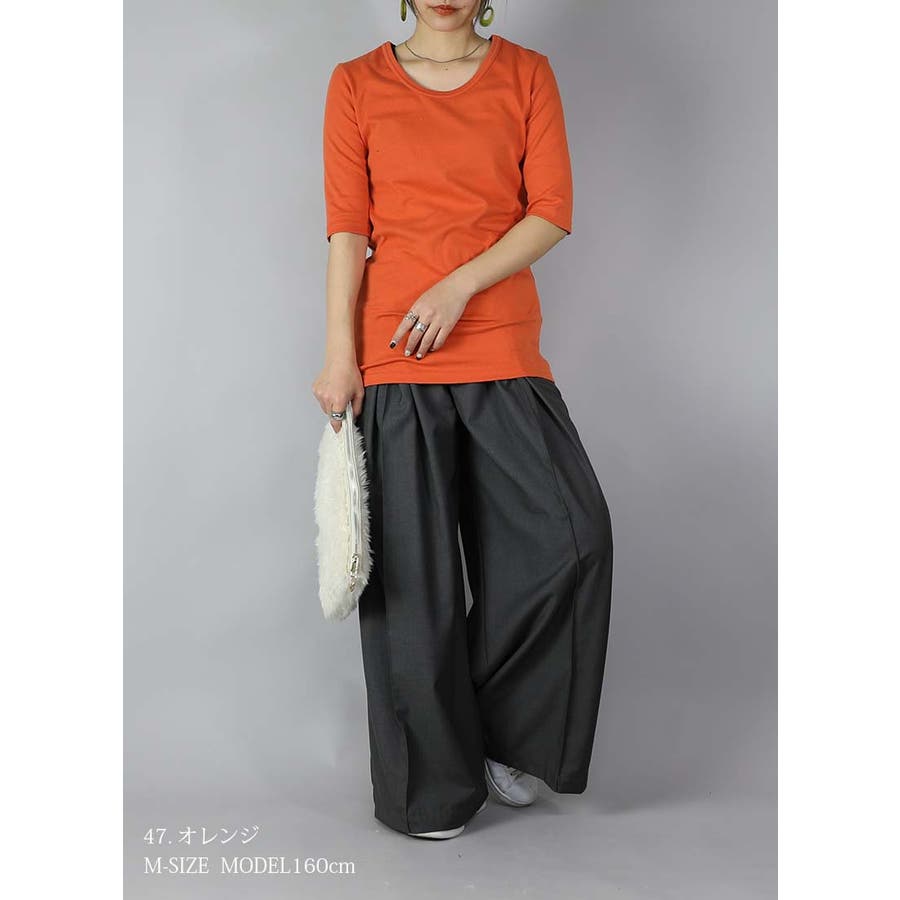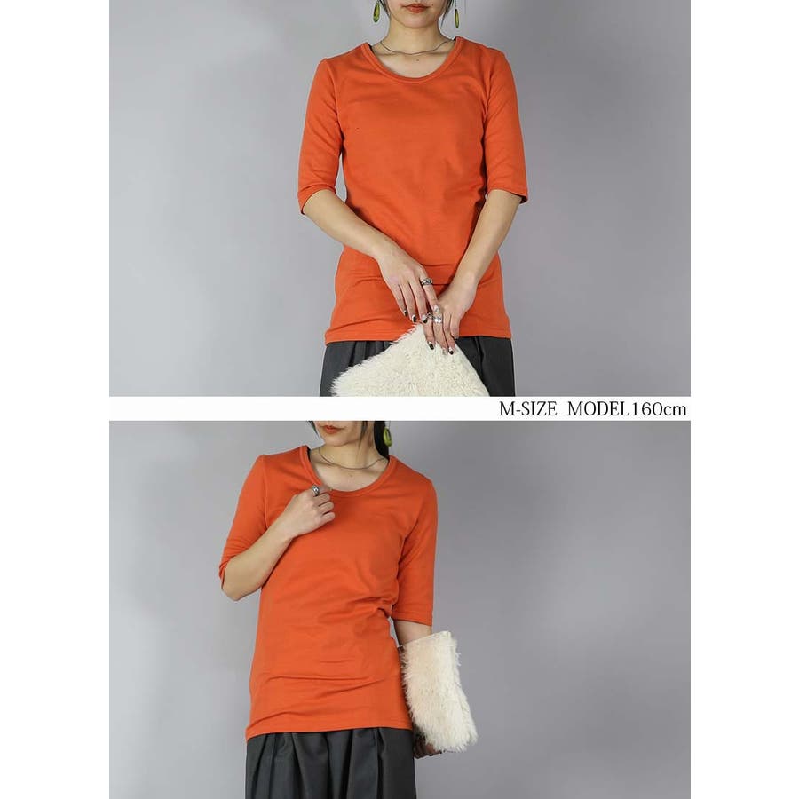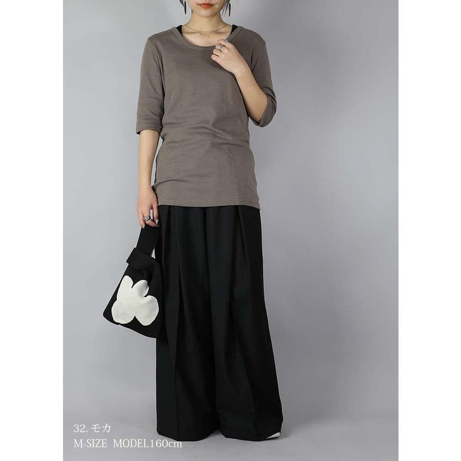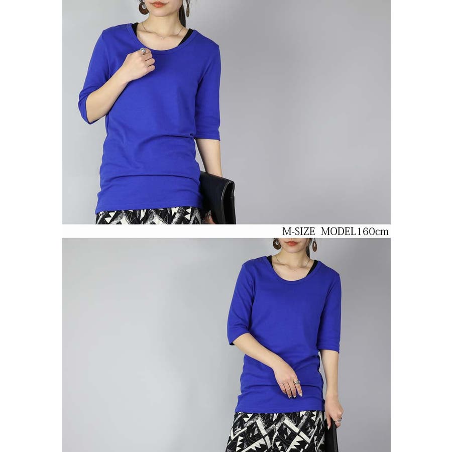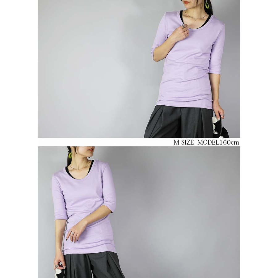 【M~LL】日本製5分袖スムースコットンロングカットソー ♪ レディース